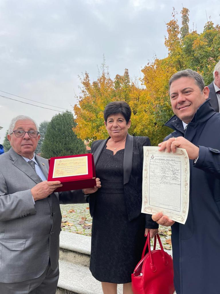 Ed i festeggiamenti sono stati celebrati proprio sulle sponde del lago di Como dove il vice sindaco Raffaele Simone, in rappresentanza dell’Amministrazione comunale di Castelvenere, ha donato alla “giovane” coppia una targa ricordo del Comune.