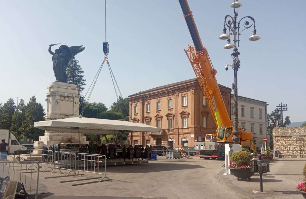 “Cenare sospesi – prosegue – accanto al monumento dei caduti. Non esattamente una bella idea. E a pochi metri dalla Rocca dei Rettori. Combinazione perfetta per la candidatura a città d’arte. Ci vuole, infatti, arte per riuscire puntualmente a far passare i progetti più stupidi per grandi idee. E tutto questo con la tolleranza-disattenzione della Soprintendenza. Ma con l’entusiasmo alle stelle dell’assessore al commercio Martignetti per avere ottenuto la sede di tappa della rassegna gastronomica. Lo stesso assessore che, a proposito di gusto, qualche giorno fa replicava con puntualità alla nota di Campus sul progetto di illuminazione (anch’esso in versione luna park) previsto per piazza Roma.