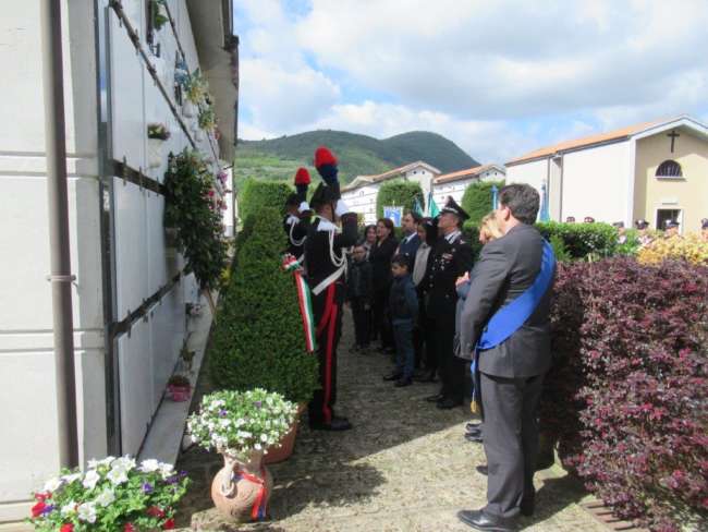 Alla manifestazione che ha visto la deposizione di una corona d’alloro presso la tomba del Caduto e di un omaggio floreale presso il monumento a lui dedicato nella Piazza che porta il suo nome, hanno partecipato, tra gli altri, la consorte Vittoria e il figlioletto Alfonso, genitori e parenti e il Comandante della Legione CC Campania di Napoli, Generale di Divisione Maurizio Stefanizzi.