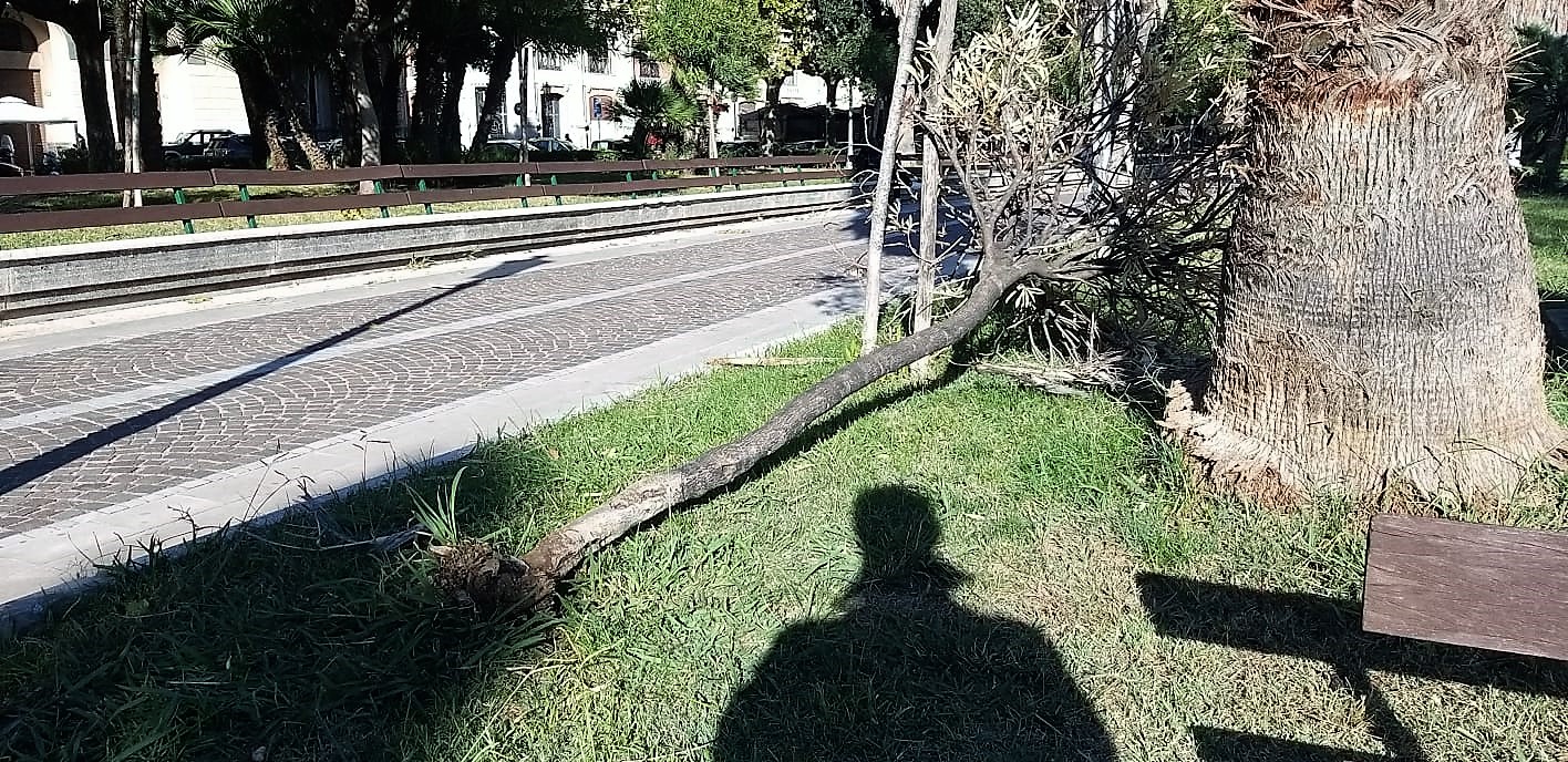 Salerno –Spezzati, sradicati: il fortissimo vento di tramontana che sta sferzando Salerno ha determinato l’abbattimento di alcuni alberi in città. Le immagini pubblicate si riferiscono alla parte di lungomare nell’area ricompresa tra Santa Teresa e piazza Cavour ed a via Nizza.