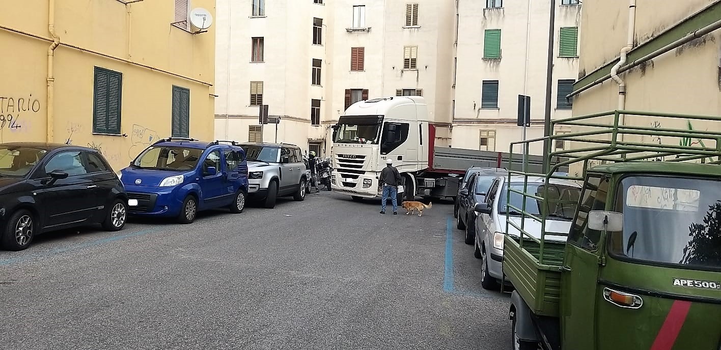 Il problema del parcheggio selvaggio è atavico. Qui, fuori dalle strisce, ogni giorno sono decine le auto parcheggiate. Problema dei residenti. Fino a che, un paio di volte all’anno, non coinvolge un pezzo di città (bloccata) allorquando un ingenuo autista di tir sceglie di imboccare via Alì.