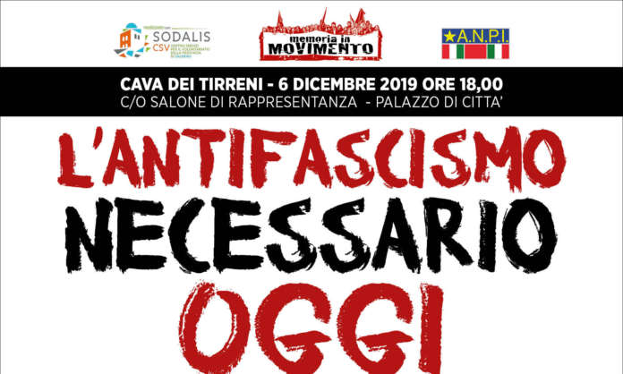 “L’antifascismo necessario oggi” è il tema del momento di riflessione pubblica organizzato dall’associazione Memoria in Movimento e dall’A.N.P.I. di Cava de’ Tirreni. L’antifascismo è un valore che appartiene a tutti gli italiani ed è il valore fondante della repubblica Italiana, nata formalmente con il referendum istituzionale del 1947. Negli ultimi anni si è giunti a definire l’antifascismo come sentimento di parte e non come elemento universale comune a tutti gli italiani.