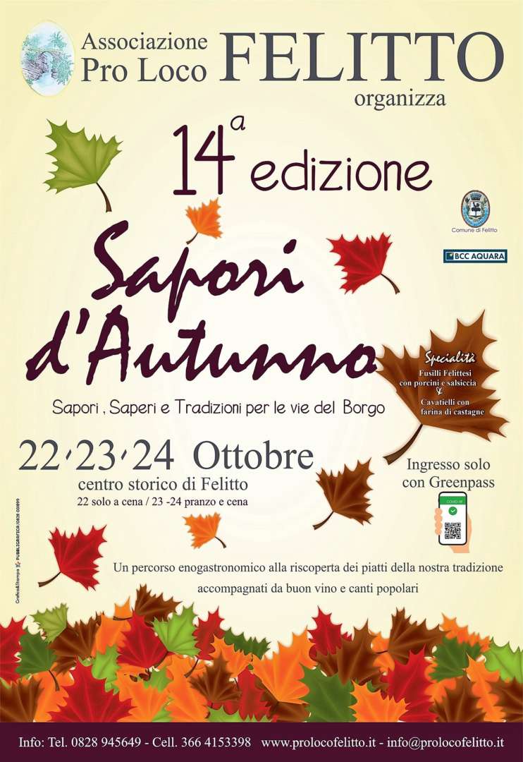 Il 22, il 23 e il 24 ottobre torna il Fusillo di Felitto con l’evento ‘Sapori d’Autunno’, un percorso enogastronomico accompagnato dalla riscoperta dei sapori tradizionali felittesi e cilentani.