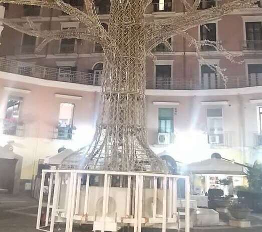 Salerno – Anche con le luci spente fa il suo bell’effetto. L’albero ‘piantato’ in piazza Flavio Gioia (foto) già si candida tra le attrazioni principali delle Luci d’Artista – edizione 2021-2022.