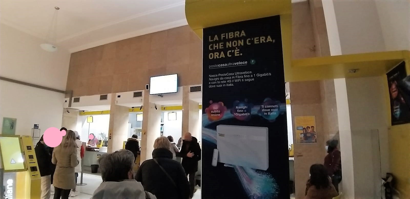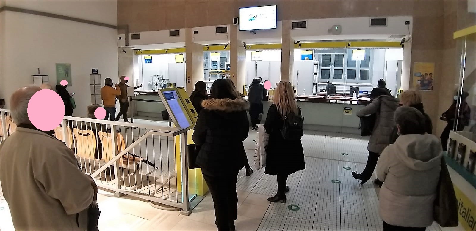 I delegati dalle aziende private, con tanto di pacchi per le spedizioni, sono invece coloro che meno cedono ai fronzoli: sanno qual è il loro sportello, laddove sanno di trovare l’addetta diventata quasi una conoscente. Seguono una fila organizzata in una corsia prestabilita sin dalla opzione sul totem. Infine i ‘prenotati’: ognuno è un ‘primus inter pares’. Mostra il codice a barre che il totem legge e certifica con un numero a parte. La loro è l’attesa mediamente meno lunga.