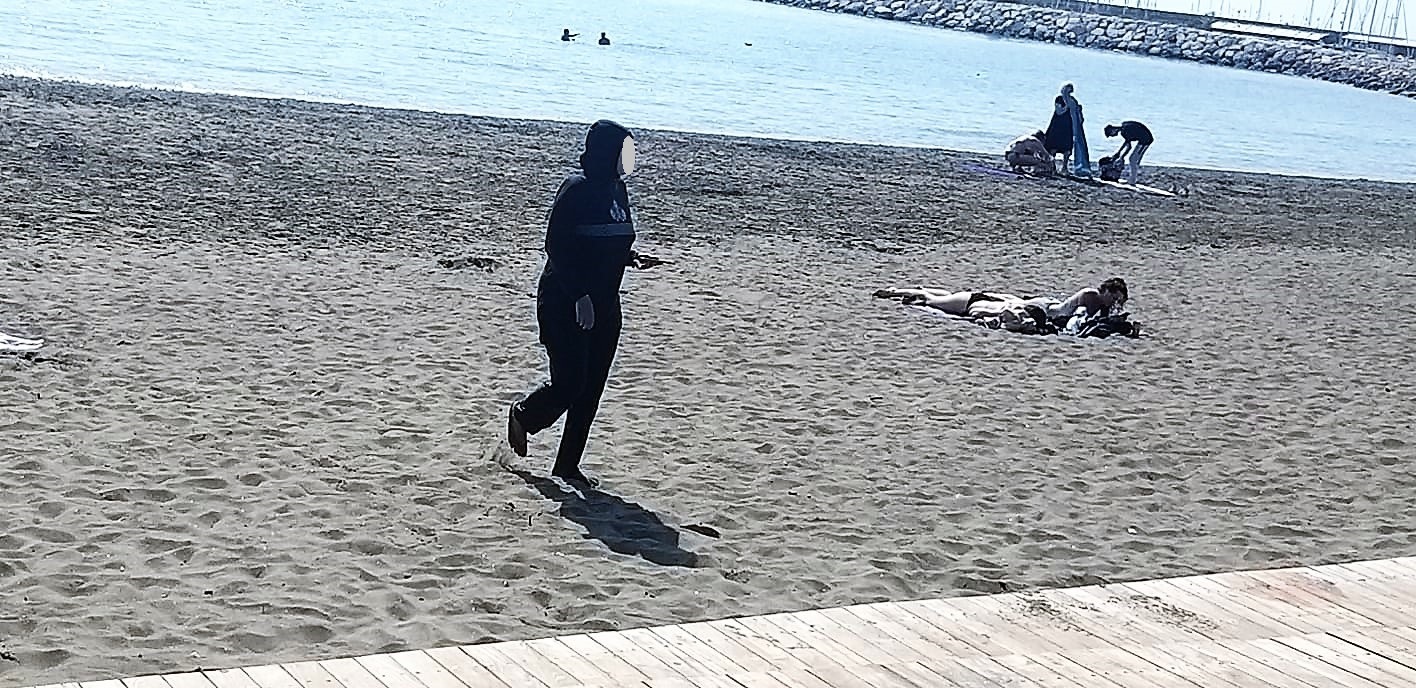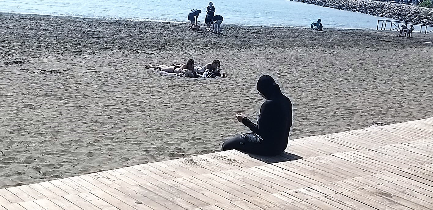 Salerno – Qui l’integrazione è un dato di fatto. Complice il caldo autunno salernitano, una donna di religione islamica, avvolta nel tradizionale abbigliamento da mare ‘Hijab’, prende il sole sulla spiaggia di Santa Teresa.