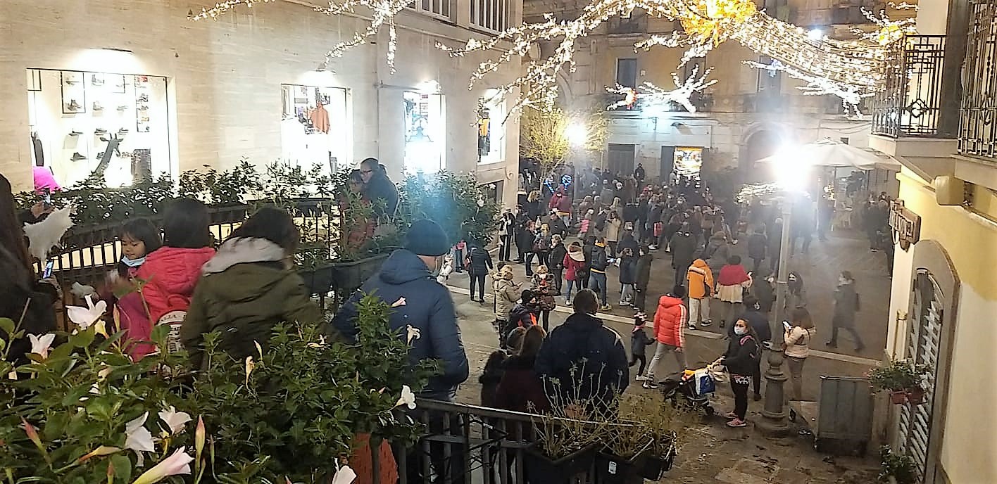 Di rito le foto nei pressi dell’albero classico di piazza Portanova e di quello, un po’ più artistico, di piazza Flavio Gioia. Considerato l’afflusso di persone, nel centro storico le associazioni impiegate nell’evento hanno provveduto a regolare il traffico pedonale, sul modello degli anni passati.