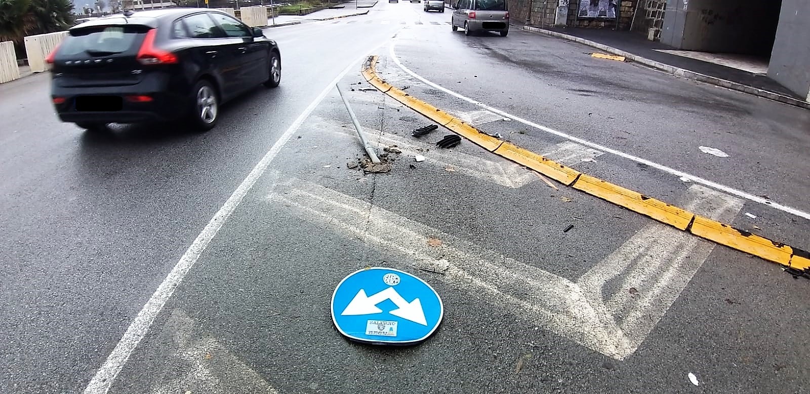 Salerno – Sinistro stradale: è accaduto e, in verità, non sorprende nessuno. Un’auto proveniente da Torrione, probabilmente nottetempo, ha abbattuto la segnaletica verticale posta sulla carreggiata all’entrata/uscita del sottopasso della Lungoirno, nei pressi del Grand Hotel Salerno.