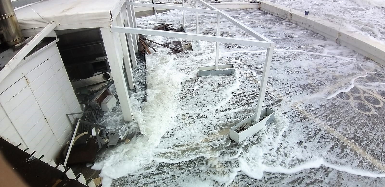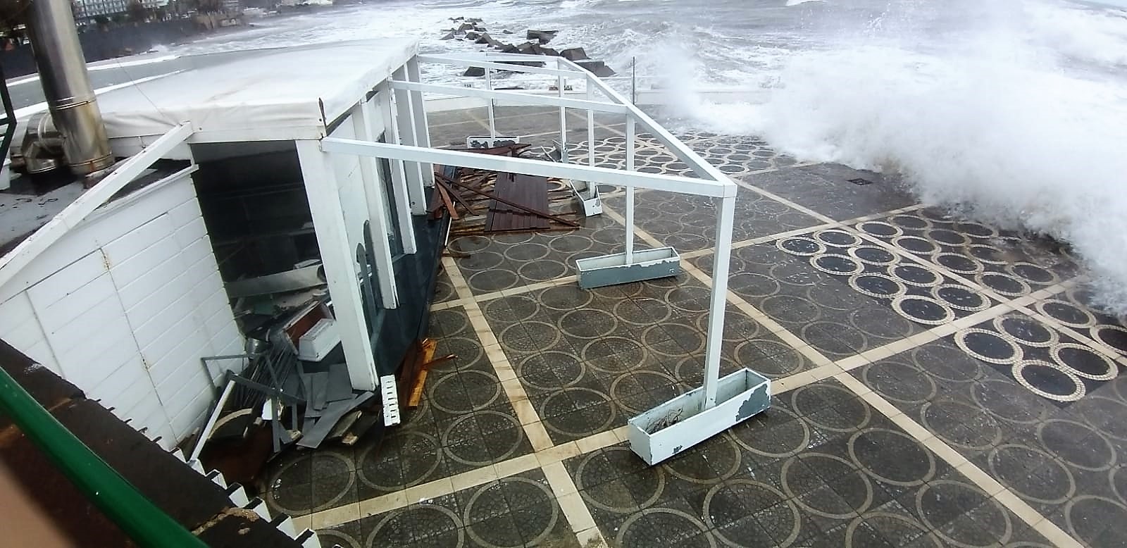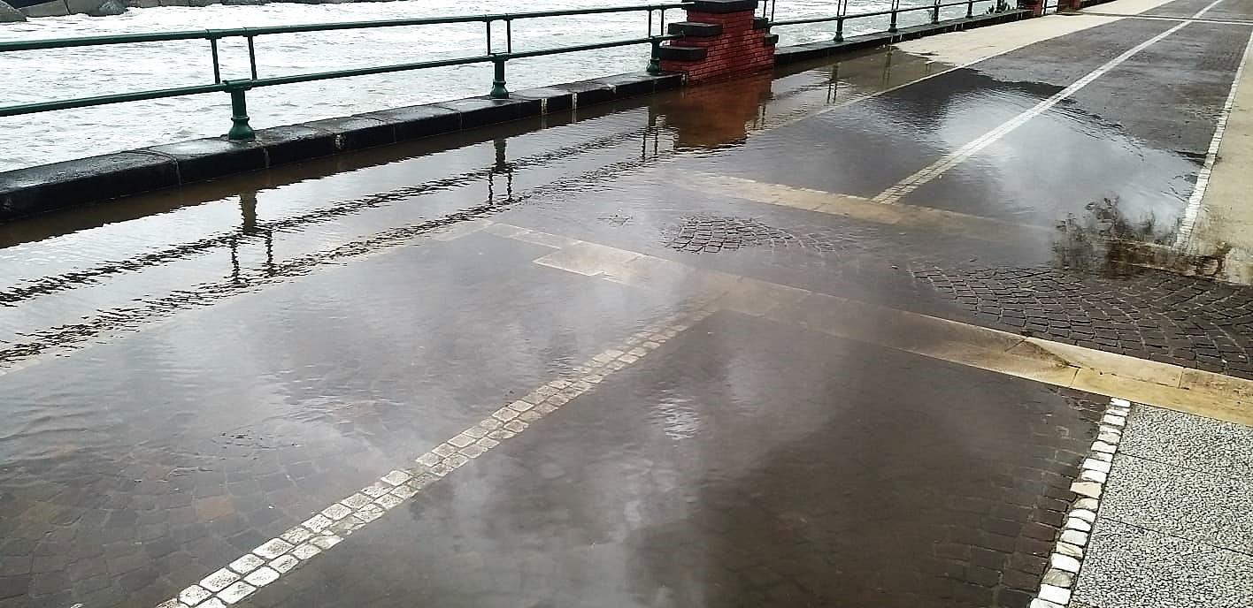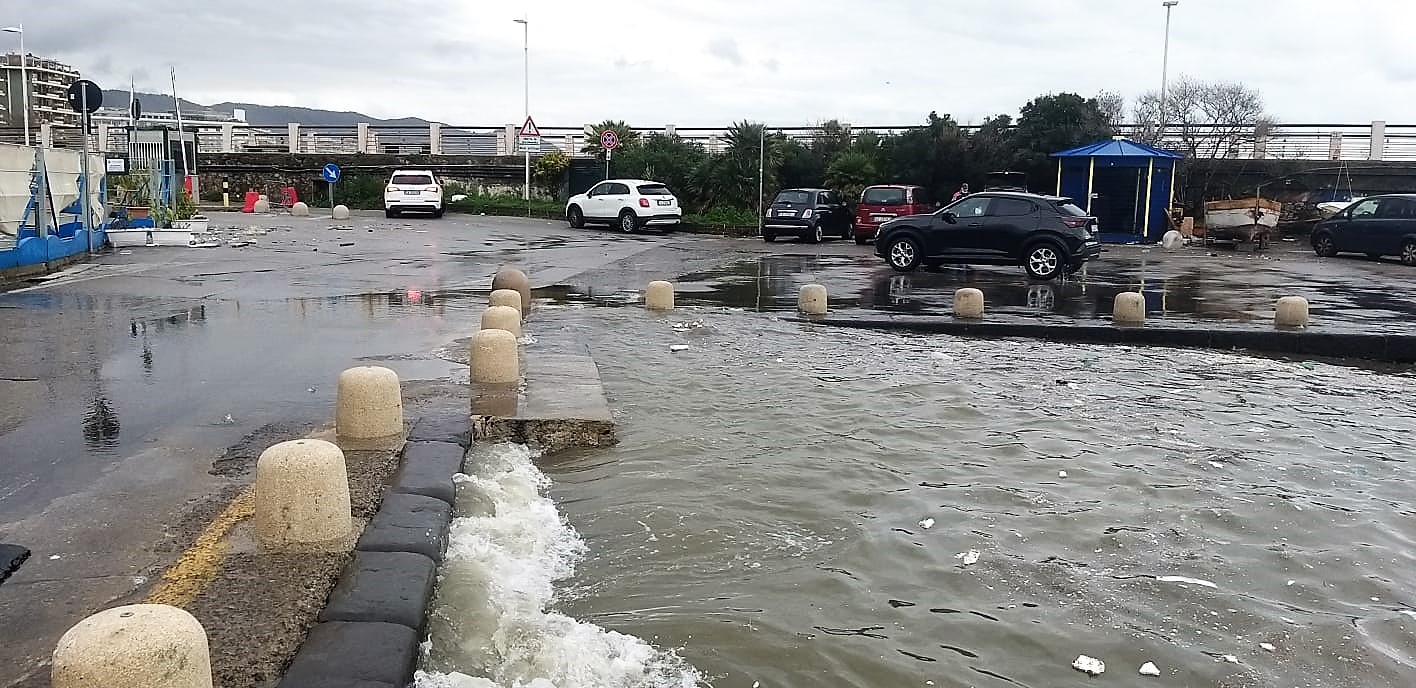 Problemi anche a lungomare dove sono numerosi gli allagamenti. Infine il solarium ex nave Concord. Il mare se l’è ripreso.
