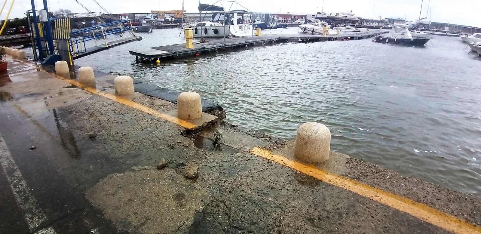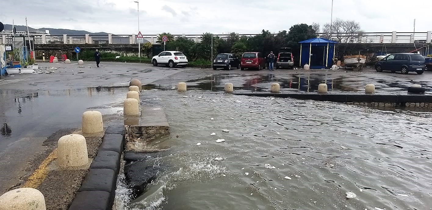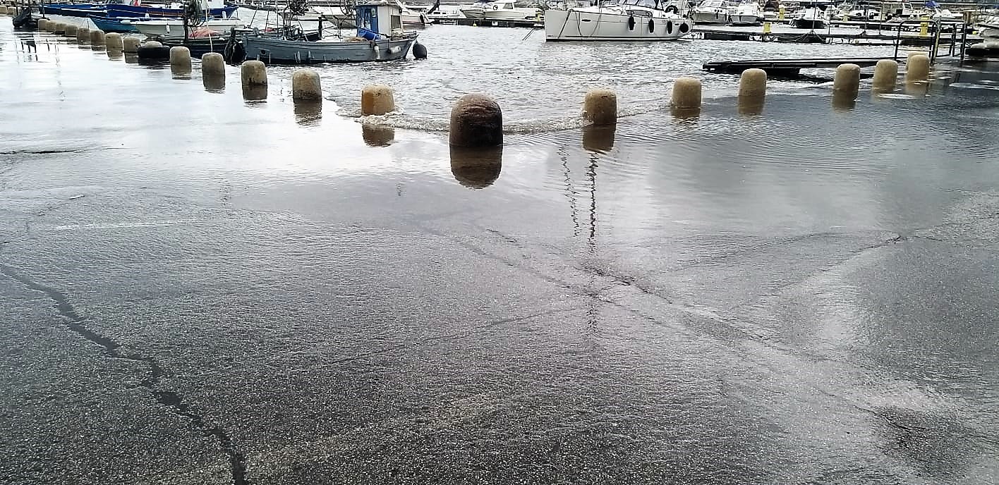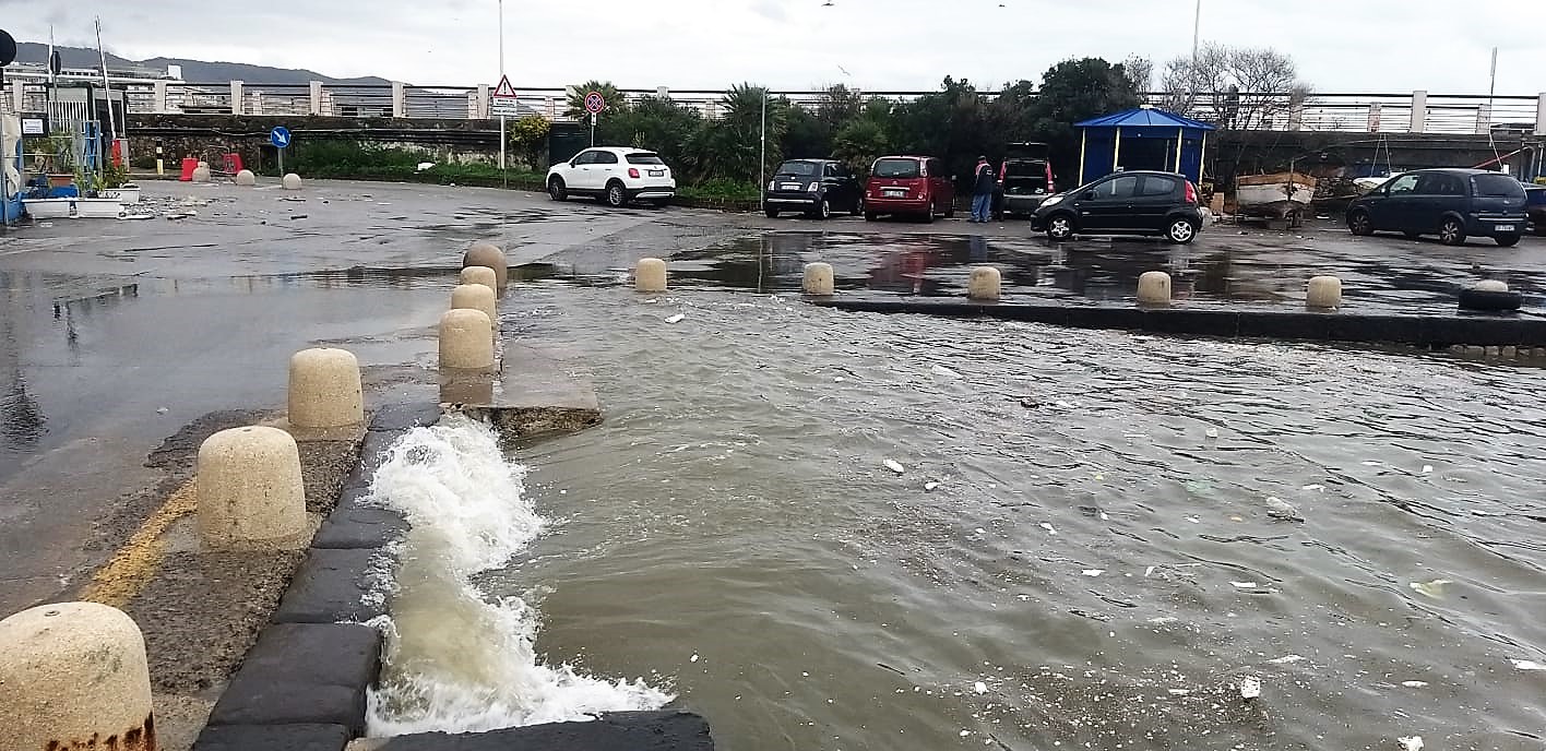 Come per gli anni scorsi, qui la risacca ha determinato l’allagamento della strada, fin dentro il piazzale della Lega Navale. Alla prova dei fatti, il braccio perpendicolare al molo di sovra flutto sembra aver solo attenuato – in maniera peraltro non sufficiente – la forza del moto ondoso.