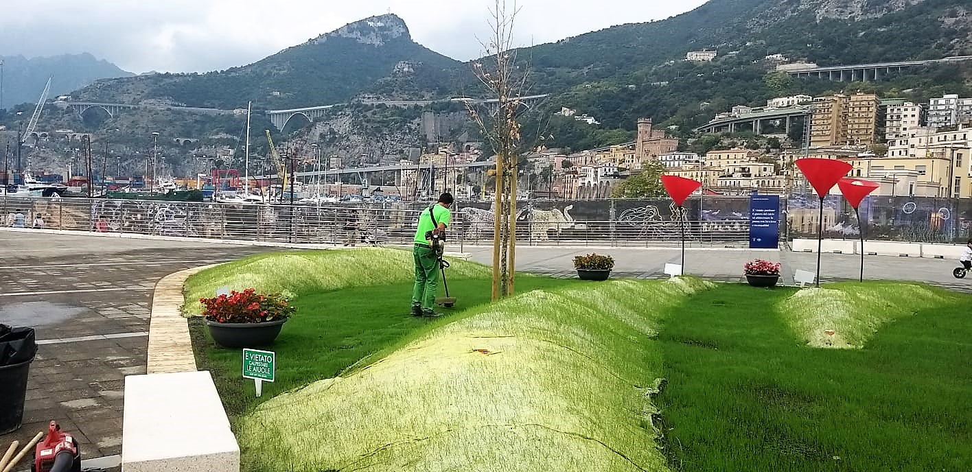 Verde – Seppure sia una macchia nella enorme distesa in pietra, la vegetazione guadagna spazio attraverso le piantine e l’erba che crescono. Tanto che per la prima volta è entrato in azione il giardiniere con la sfalciatrice.