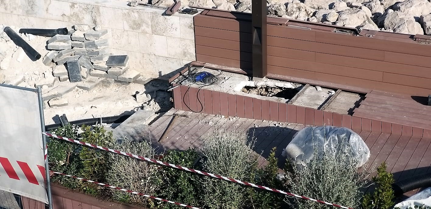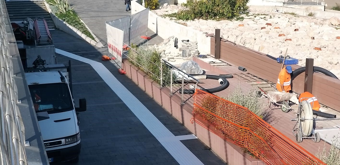 I disagi non mancano e, in verità, non è affatto bello vedere parte della passeggiata sopraelevata sventrata con tanto di detriti, attrezzi e calcinacci sul legno da poco inaugurato.