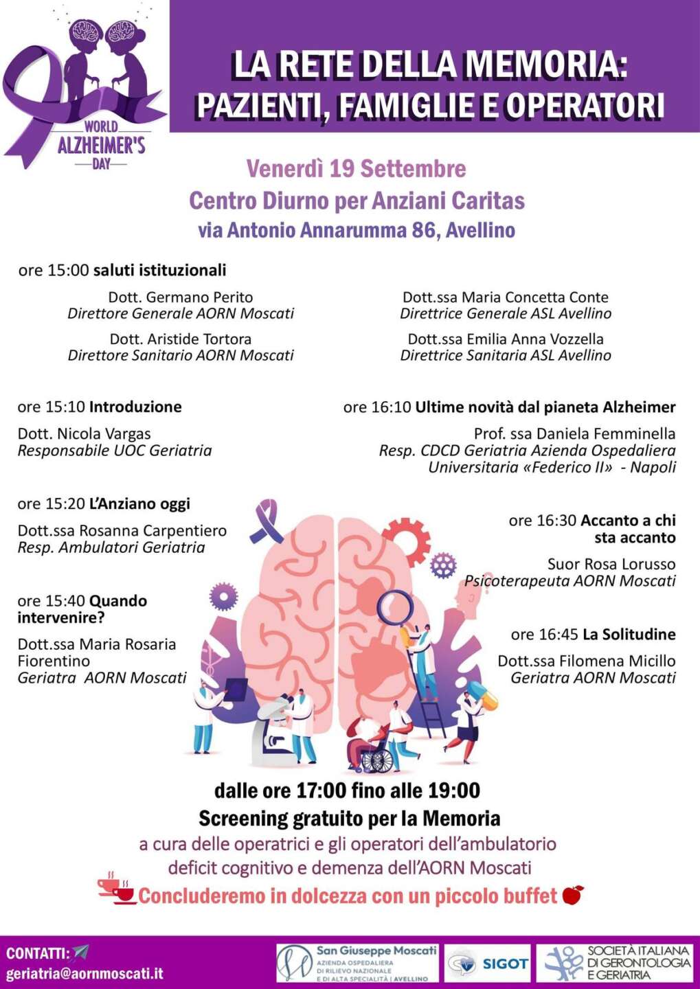 Gli anziani che frequentano il centro saranno accolti dai geriatri dell’Azienda Moscati – tra cui Rosanna Carpentiero, Maria Rosaria Fiorentino e Filomena Micillo – che effettueranno gratuitamente il test della memoria, uno strumento semplice ma fondamentale per la diagnosi precoce delle demenze.