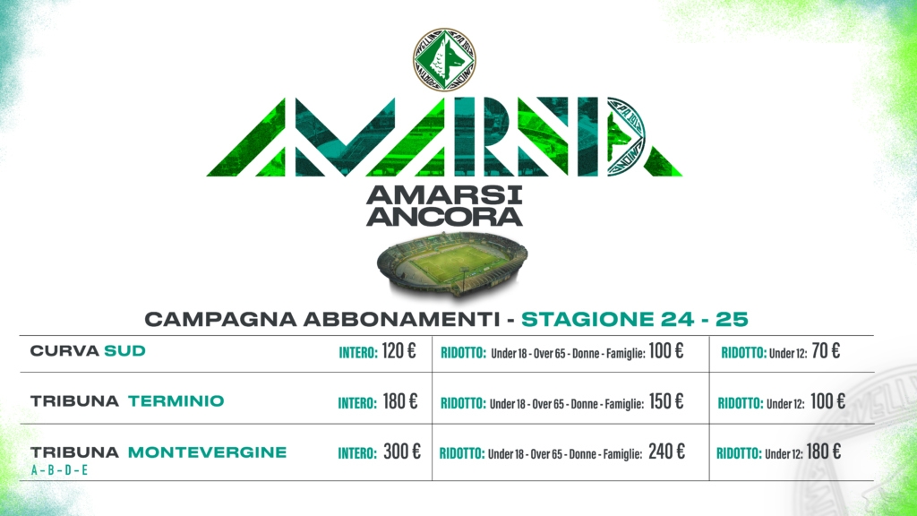 Partirà mercoledì 19 giugno alle ore 15:00 la nuova campagna abbonamenti dell’U.S. Avellino 1912. Partendo da “Solo per Amore”, slogan utilizzato nella scorsa stagione, e prendendo spunto da uno dei cori più significativi della tifoseria biancoverde, con l’intento di tracciare una linea di continuità, la campagna abbonamenti 2024/2025 avrà come motto “Amarsi Ancora”.