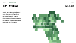Nel contesto meridionale, Avellino rappresenta una delle poche note positive. Solo Cosenza, al 16° posto, riesce a entrare nella top 20 nazionale, pur perdendo tre posizioni rispetto all’anno scorso. In fondo alla classifica si concentrano nove città del Sud – Caltanissetta, Caserta, Catania, Palermo, Catanzaro, Napoli, Crotone, Vibo Valentia e Reggio Calabria – tutte sotto il 35% del punteggio, con le ultime tre addirittura al di sotto dei 25 punti su 100.