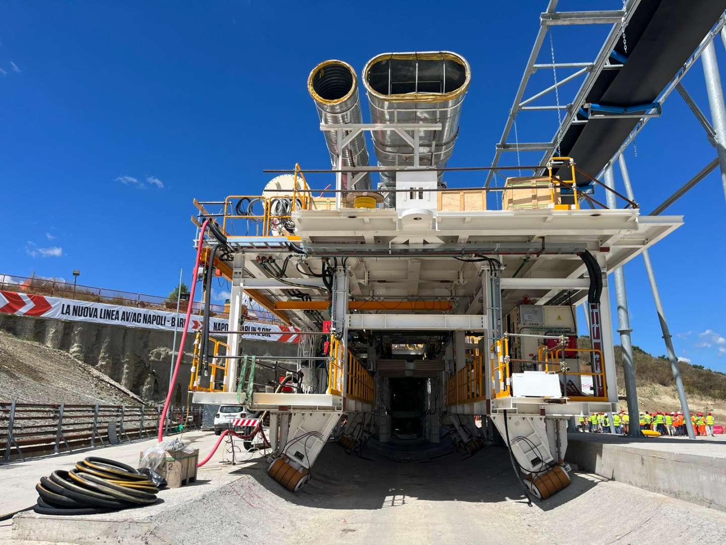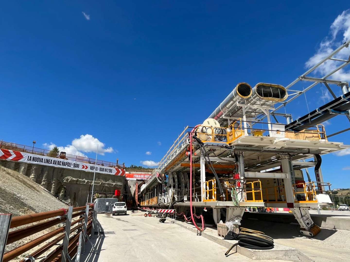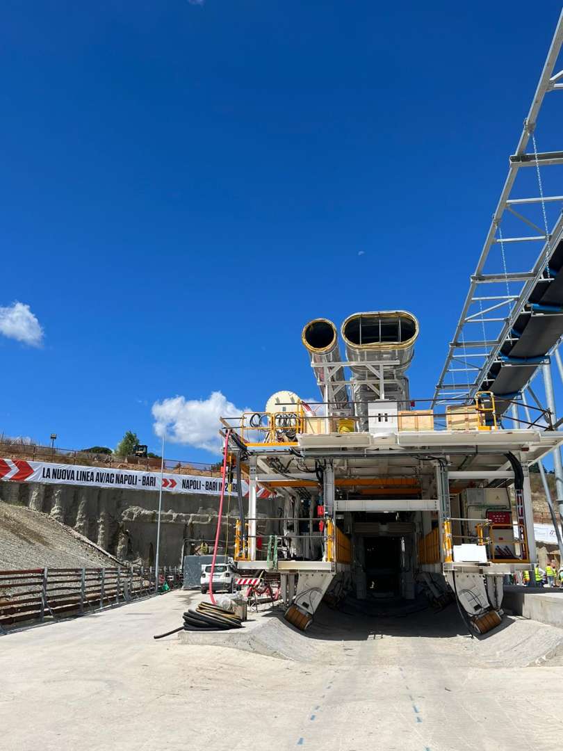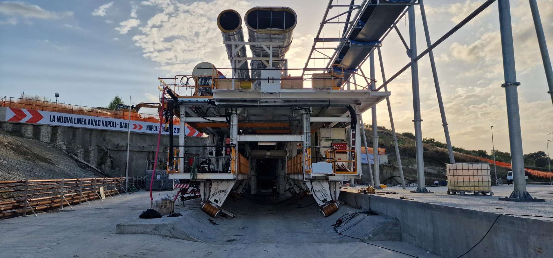 Aurora, la talpa meccanica lunga 100 metri con 18 motori da 6,3 Megawatt totali, ha iniziato lo scavo della galleria di Grottaminarda, in provincia di Avellino, sulla tratta Apice-Hirpinia della nuova Linea Alta Velocità/Alta Capacità Napoli-Bari.