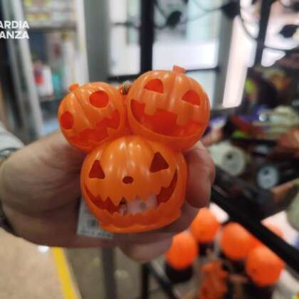 Tra i prodotti sequestrati vi erano confezioni contenenti zucche, lanterne, anellini, ciondoli e lumini destinati all’infanzia. Il responsabile del punto vendita è stato segnalato alla Camera di Commercio Irpinia-Sannio per le violazioni alla normativa che disciplina la sicurezza sui prodotti, che prevede una sanzione amministrativa fino a 25.823,00 €.