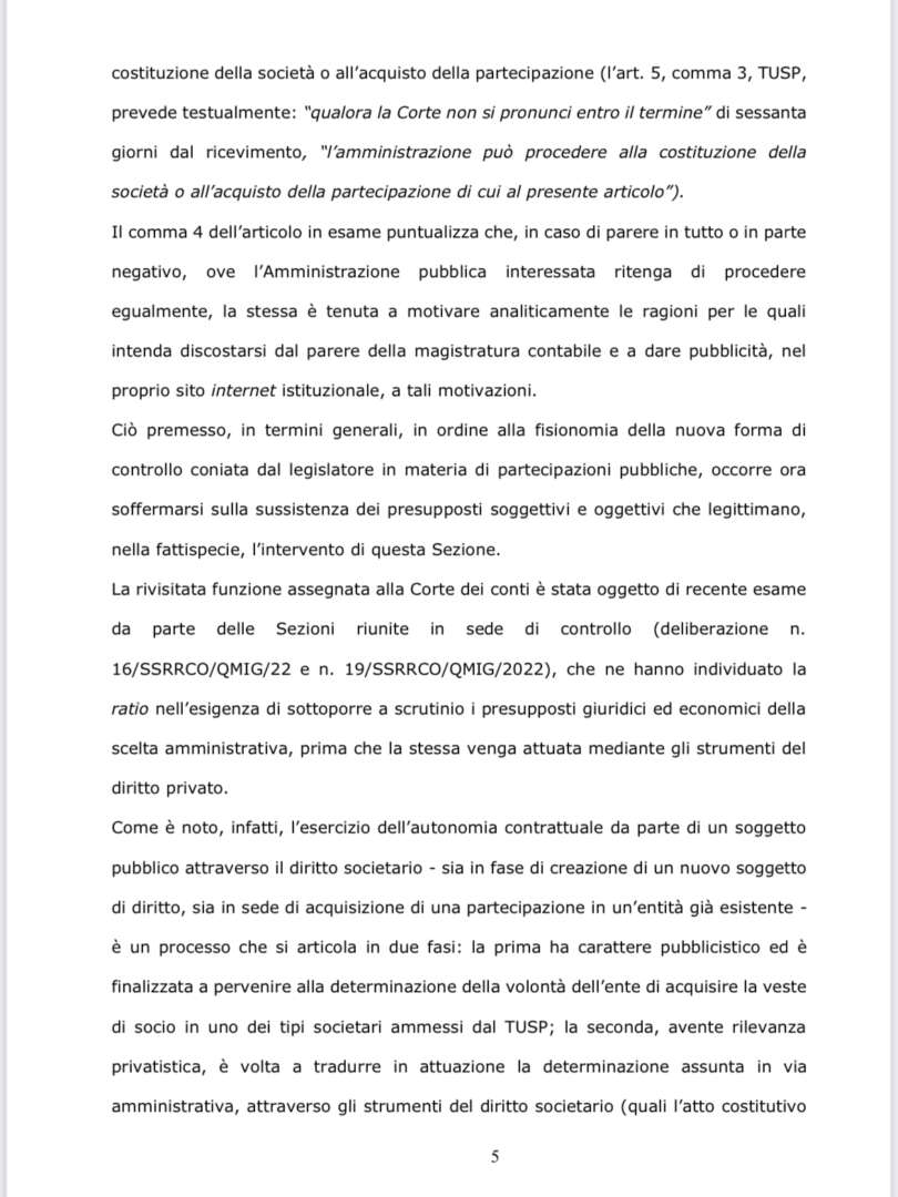 Al netto delle rosee aspettative del sindaco Gianluca Festa, la Corte dei Conti ha dichiarato inammissibile il parere richiesto dal Comune capoluogo (leggi le motivazioni in allegato, ndr) rispetto alla nascita della nuova società pubblico- privata, la “Grande srl”.