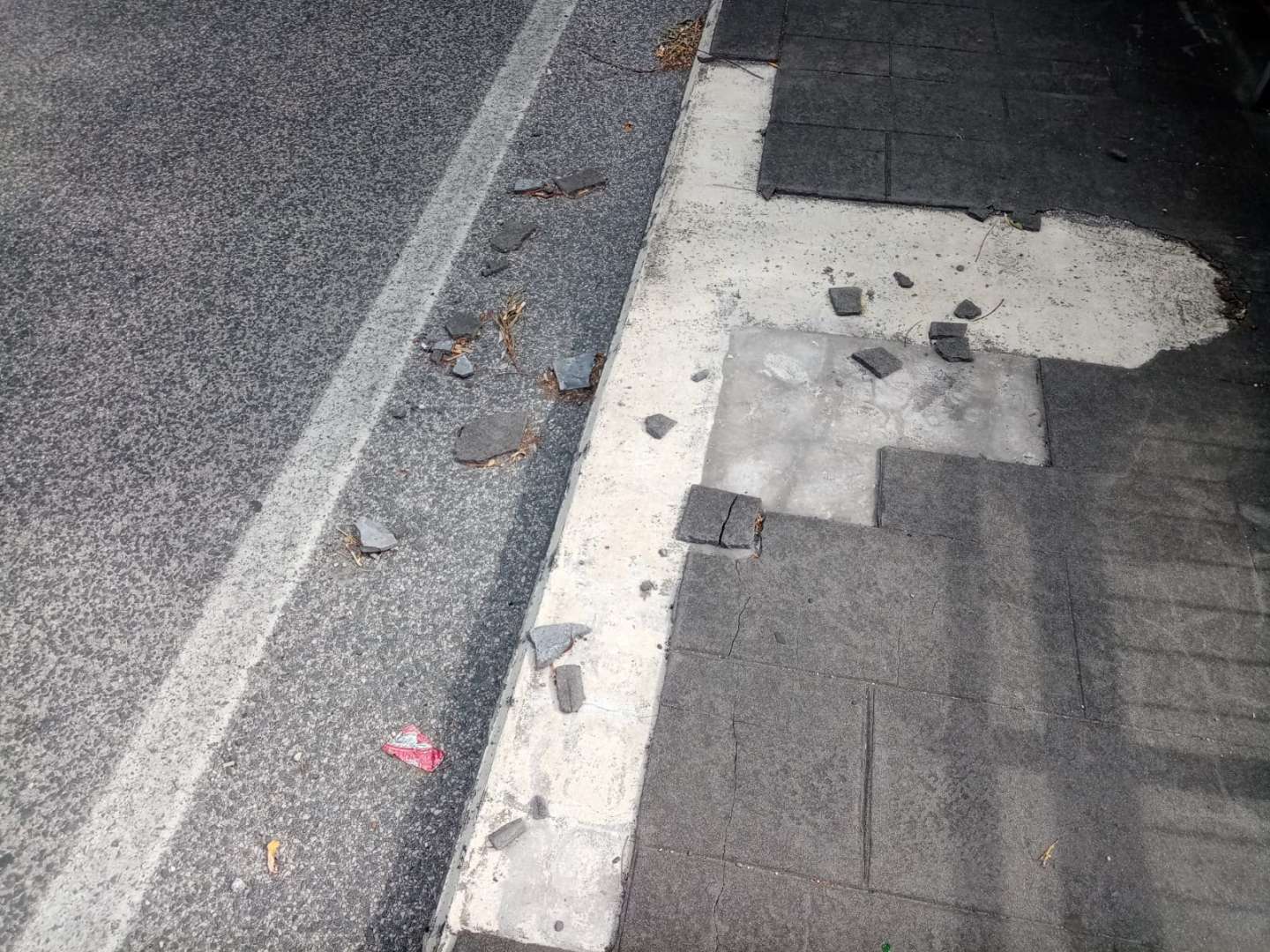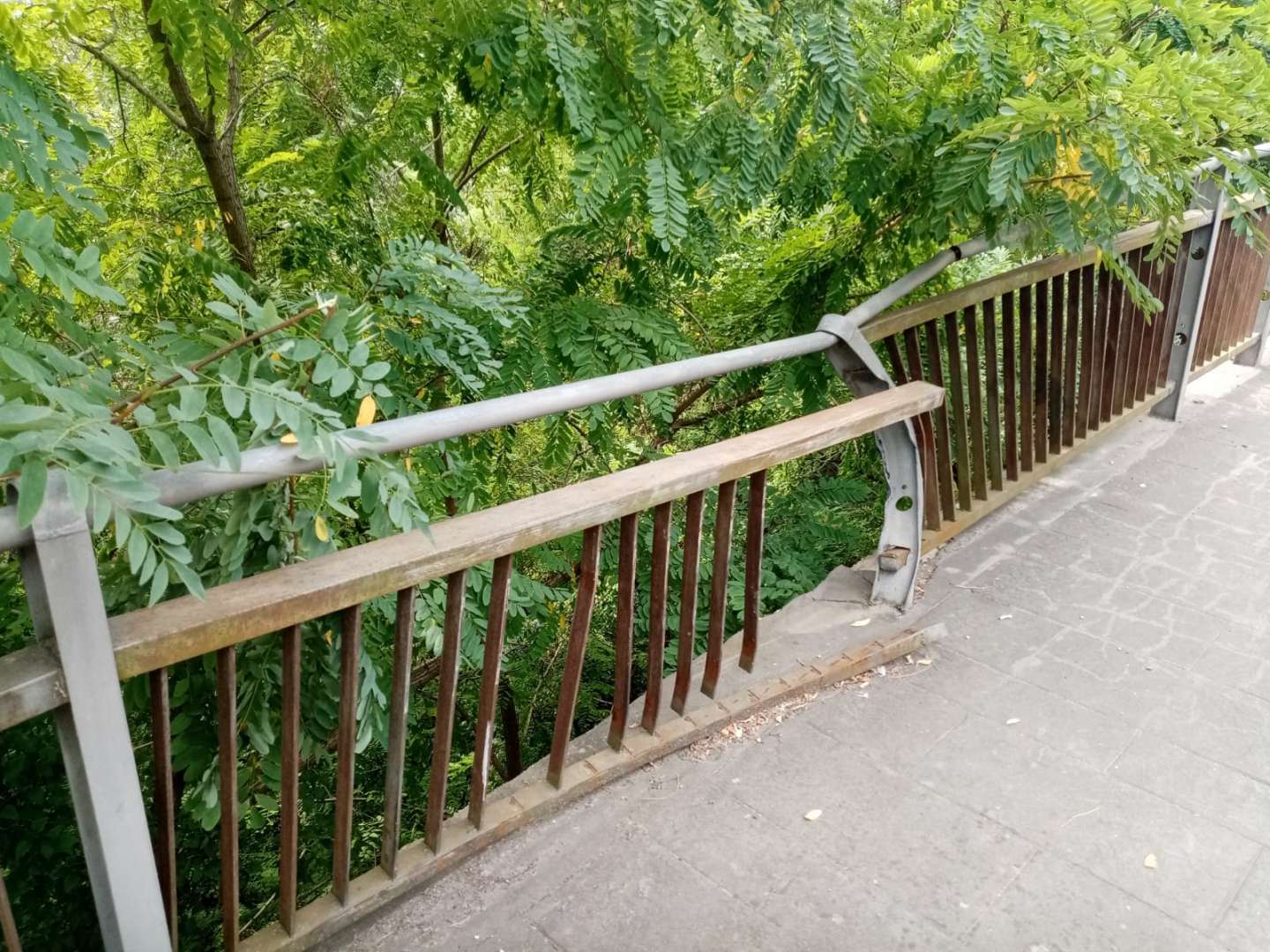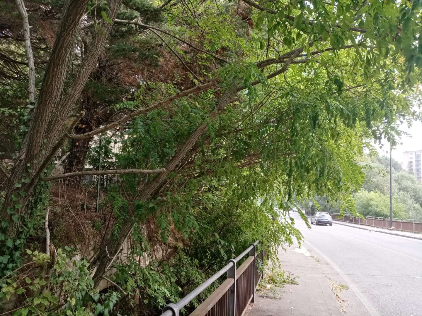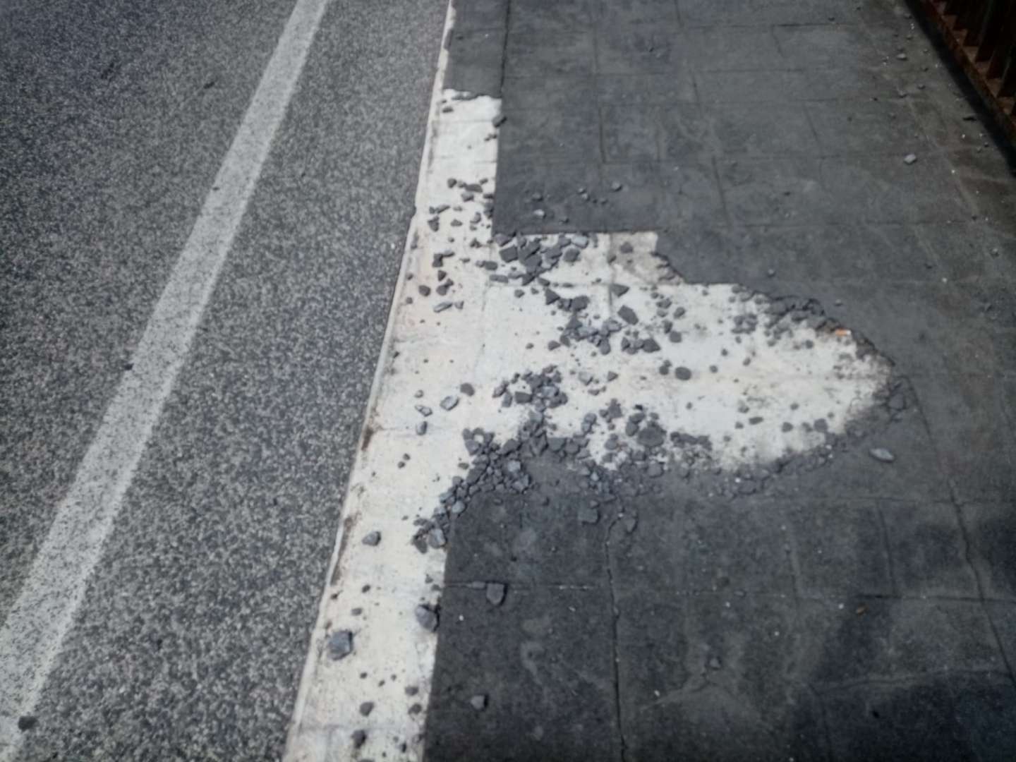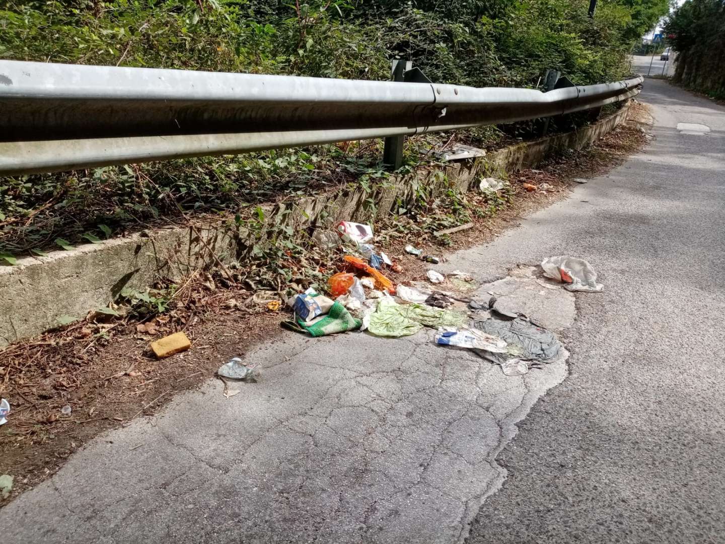 Non è tutto purtroppo, infatti, i marciapiedi sono fortemente usurati, tanto che è possibile notare dei pezzi di catrame sbriciolato sulla banchina. Tra l’altro le recinzioni, che dovrebbero dividere la strada dalla vegetazione, in diversi punti sono piegate e in altri completamente assenti, altro problema che può causare pericolo.