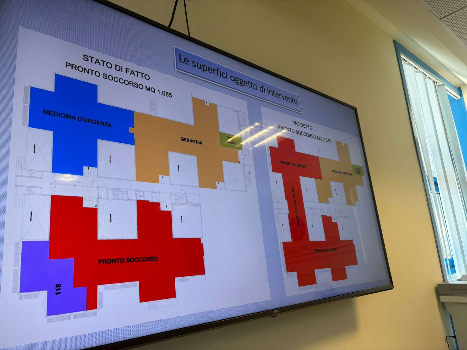 I lavori sono sono partiti già da un po’, in una fase preliminare abbiamo già realizzato quelle che erano le condizioni per poter predisporre gli spazi che saranno occupati dal nuovo pronto soccorso. Abbiamo realizzato il nuovo, già realizzato e attivo, il nuovo pronto soccorso ostetrico e ginecologico che parte integrante di questa di questo programma. Sono partiti i lavori di riorganizzazione del nuovo pronto soccorso”.