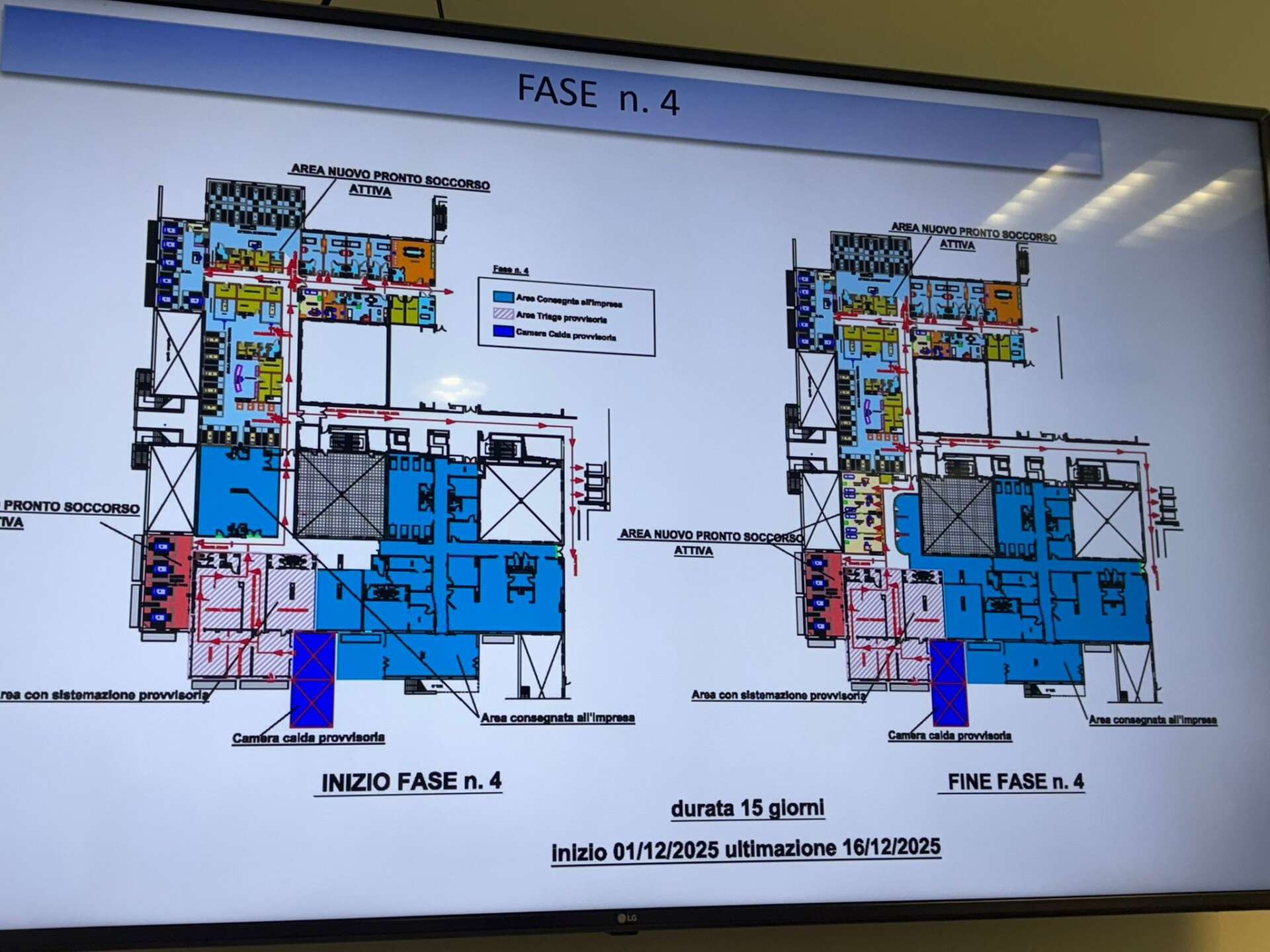 L’obiettivo è ultimare i lavori entro marzo 2026 e, chiaramente, contemporaneamente verrano comunque erogati i servizi di prima emergenza. “Un pronto soccorso non può essere in nessun modo bloccato o comunque essere in qualche modo ridotte le attività. quindi dobbiamo fare in maniera tale che i nostri lavori vadano a interagire con le attività sanitarie senza interrompere alcun servizio e questa è la difficoltà più grossa”.