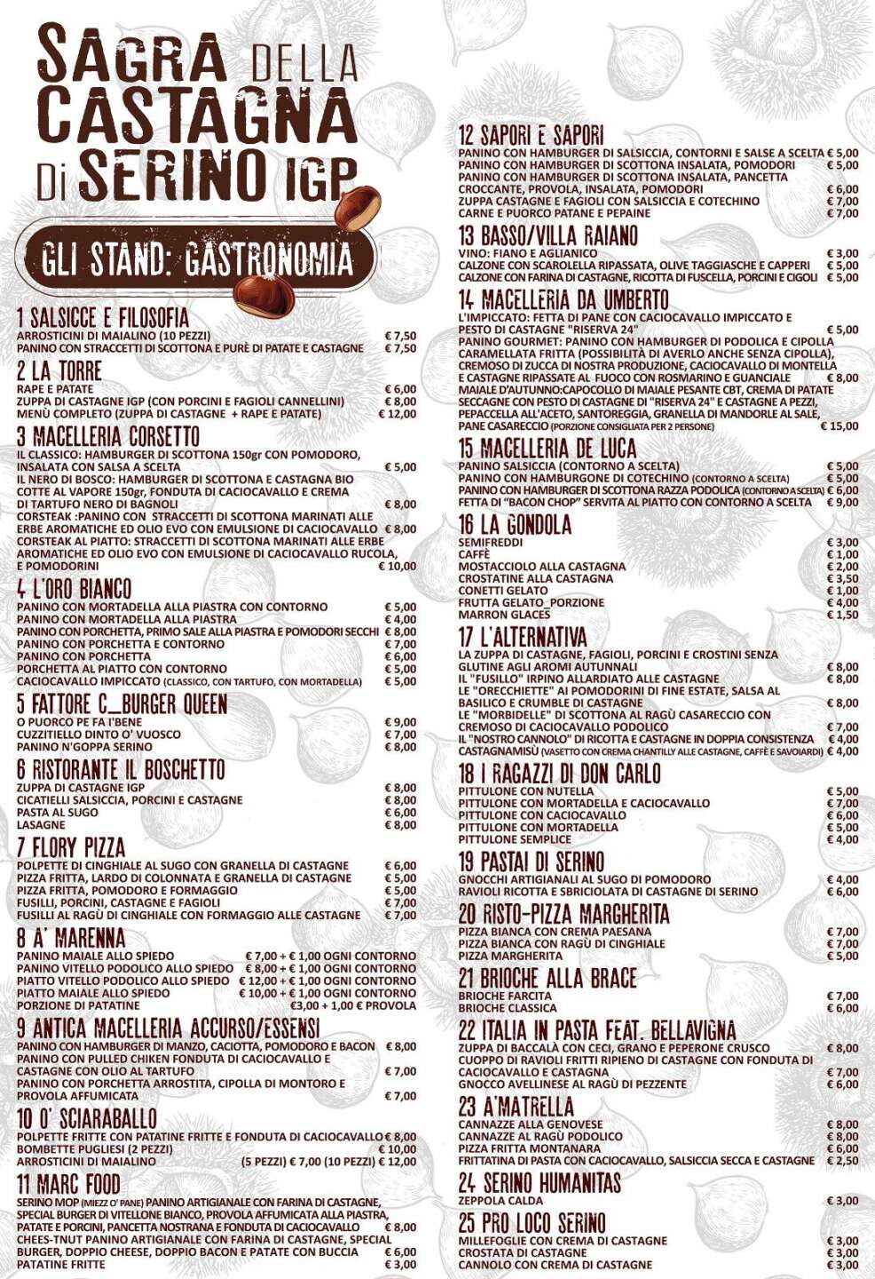 La Sagra della castagna IGP di Serino è riconosciuta tra le migliori a livello nazionale: in ogni piatto si celebra l’identità irpina, la storia dell’Irpinia, il cuore dell’Irpinia. Come ogni anno spazio anche ad una serie di eventi tra visite guidate, selezioni musicali e l’immancabile Virulera gigante (La caldarrostiera come si chiama a Serino). E quest’anno la sagra è natura, storia e avventura con