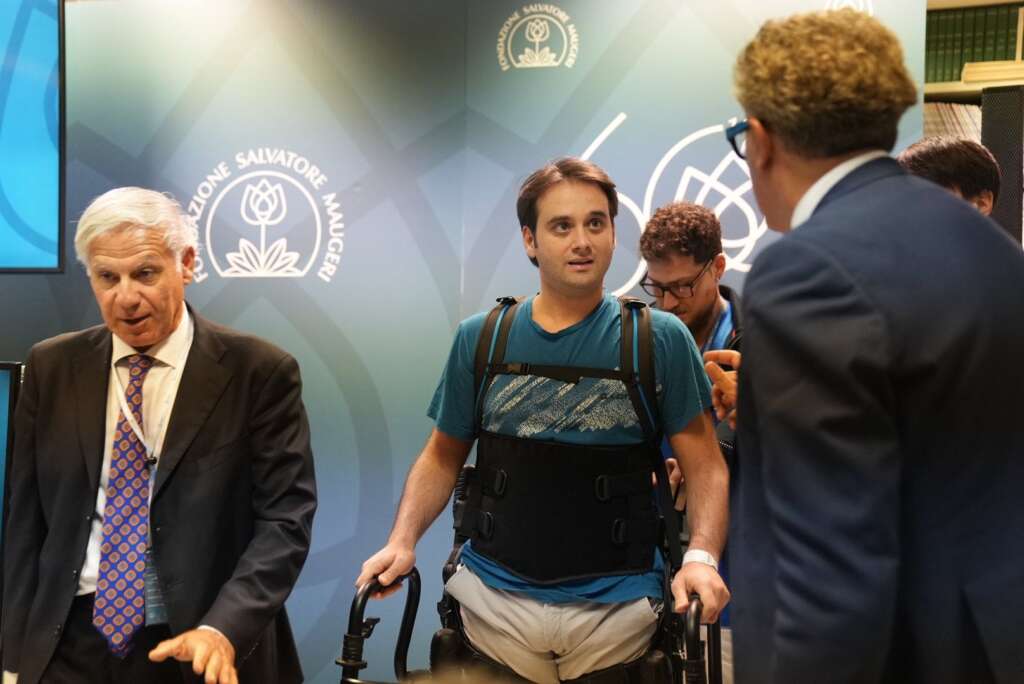 Emozionanti anche le testimonianze dei pazienti, come quella di Pierangelo, che grazie a un percorso di riabilitazione robotica ha recuperato la capacità di camminare in modo parzialmente autonomo. La sua storia, presentata dai dottori Laura Marcuccio, Mauro Maniscalco e Giovanni D’Addio, ha rappresentato un simbolo tangibile del valore della ricerca applicata alla vita reale.