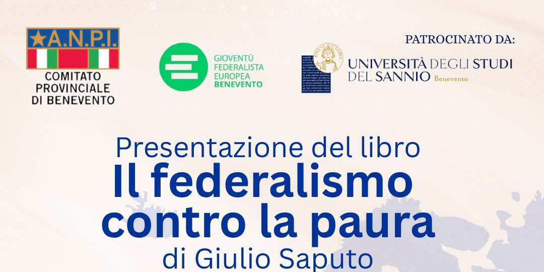 La Gioventù Federalista Europea di Benevento, in collaborazione con l’ANPI – Comitato Provinciale di Benevento – organizza la presentazione del libro “Il federalismo contro la paura. Una bussola per la planetarizzazione” di Giulio Saputo, edito da Edizioni Altravista. L’incontro si terrà giovedì 24 ottobre alle ore 17.30, presso la Sala Letture di Palazzo De Simone, con il patrocinio dell’Università degli Studi del Sannio.