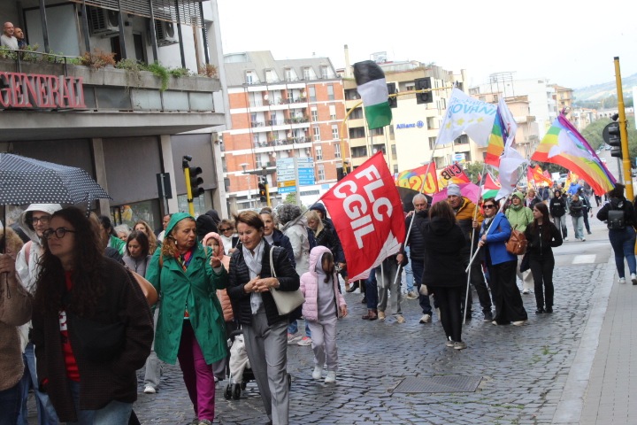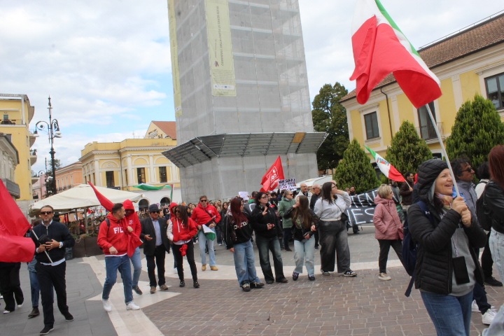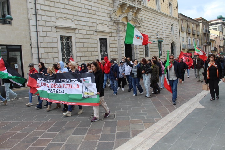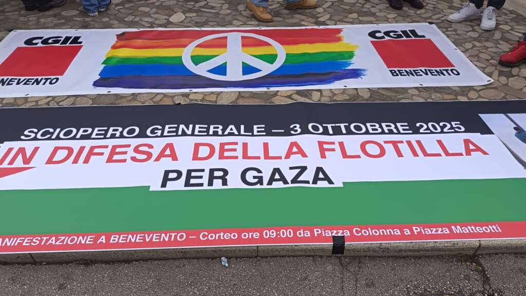 Pace, fine del genocidio e dimissioni del Governo Meloni sono i valori che hanno messo insieme tutti alla manifestazione di oggi. Luciano Valle, segretario provinciale Cgil, ha sottolineato: “Non possiamo restare in silenzio. Ci lascia perplessi, siamo indignati e siamo molto amareggiati per le parole del Presidente del Consiglio che ha detto che vogliamo fare il week end lungo. Si metta in testa che noi siamo disposti anche a fare un anno lungo perchè non è possibile girarsi dall’altra parte per quello che ta accadendo al popolo palestinese alla striscia di Gaza e alla Flotilla. Noi non ci voltiamo dall’altra parte”. Fanno rumore però le assenze istituzionali questa mattina. Valle ha commentato: “A Benevento è quasi un classico. Questa è una manifestazione trasversale. Ormai è diventato una costante nella loro assenza. Loro devo ricordarsi che rappresentano i cittadini che sono scesi in piazza . I cittadini in piazza colmano la loro assenza”. Amareggiato Valle soprattutto per l’assenza dei sindacati Cisl e Uil: “Non sono presenti come in altre piazze. E” una scelta legittima ma dispiace. L’unione è sempre importante”. Presente anche Floriana Fragnito, portavoce del Global Movement to Gaza – Sannio, ha attaccato: “E’ un genocidio che non tende ad esaurirsi. La comunità internazionale ha rafforzato la propria scelta di complicità. Hanno deciso che il popolo palestinese è sacrificabile . Una macchina economica che sta solo finanziando e alimentando armi guerra e il genocidio in Palestina. Hanno deciso di abbandonare quel popolo. Oggi scioperiamo domani saremo a Roma, per una grande manifestazione accanto al popolo palestinese. C’è uno Stato criminale dove il nostro Governo è complice. Chiediamo al dimissione del Governo che sta gestendo con repressione lo sciopero. Devono rompere i rapporti con il popolo israeliano”.