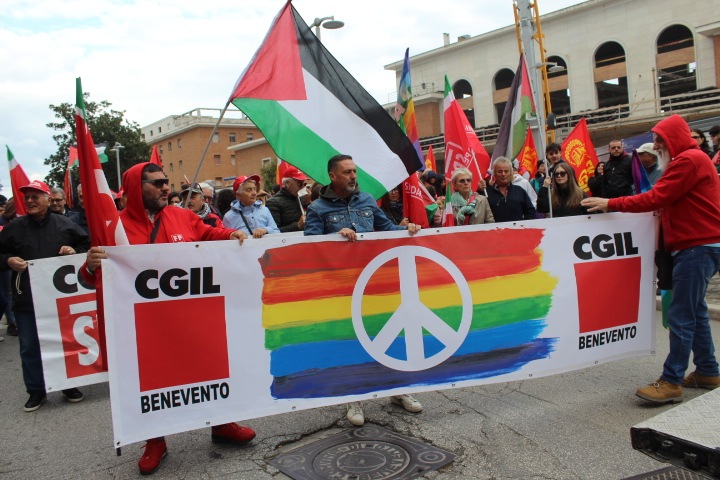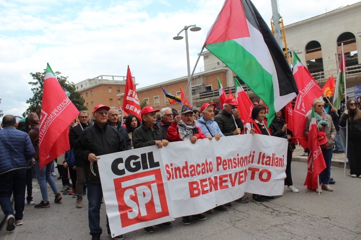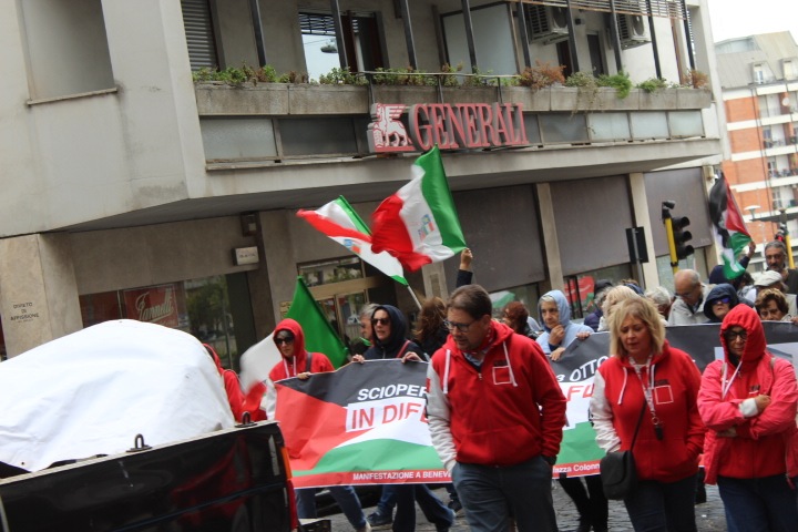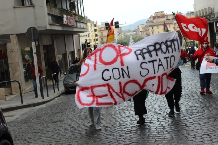 Solidarietà per Gaza e mobilitazione a favore del popolo palestinese. Dalle piazze del Sannio nuova manifestazione di protesta contro le politiche del Governo con la Stella di Davide. Il corteo stavolta è partito da piazza Colonna ed e proseguito per le vie del centro storico in adesione alle proteste nazionali ed allo sciopero generale indetto da Cgil, Usb e Cub.