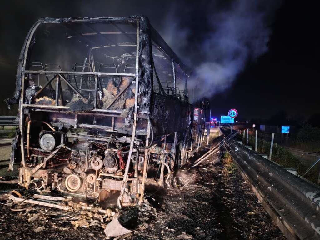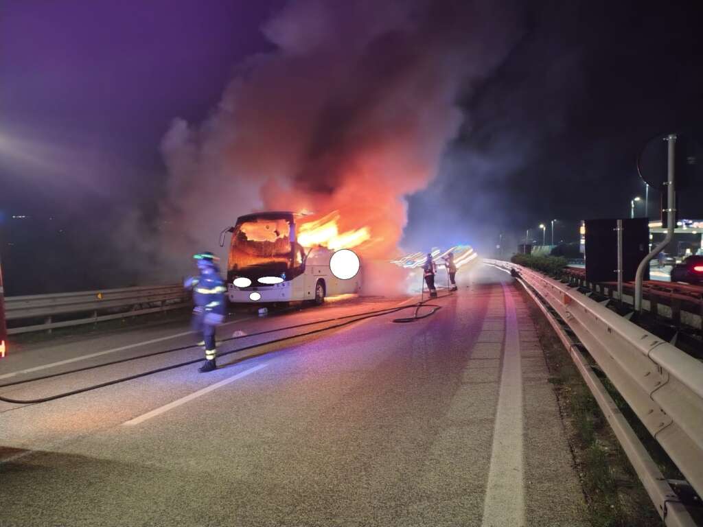 Paura nel tardo pomeriggio per un pullman di linea nel territorio di Torrepalazzo poco dopo lo svincolo per Campobasso procedendo verso Benevento. Il mezzo mentre stava circolando ha improvvisamente preso fuoco probabilmente per un’avaria. A bordo erano presenti circa 20 passeggeri e uno di questi, forse nel tentativo di rompere il finestrino e poter scappare, si sarebbe ferito ad una mano. Soltanto tanta paura per gli altri occupanti che sono riusciti prontamente a scendere. Sul posto i Vigili del Fuoco del comando Provinciale che attraverso l’ausilio di un’autobotte hanno domato le fiamme anche se il mezzo è andato completamente distrutto. Inevitabili i disagi alla circolazione sull’arteria  per permettere ai caschi rossi di operare e mettere in sicurezza gli altri passeggeri