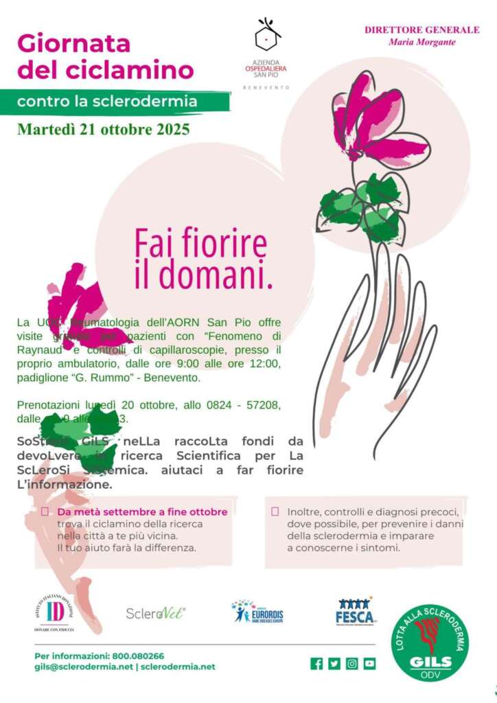 Martedì 21 ottobre l’Azienda Ospedaliera San Pio di Benevento aderisce alla campagna di sensibilizzazione nazionale sulla Sclerodermia.