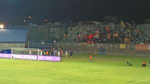 6′- Il terreno di gioco del “Francioni” si conferma in non perfette condizioni con la palla che rimbalza spesso in maniera irregolare.