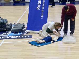 Un momento particolarmente apprezzato della manifestazione è stato quello dedicato alla dimostrazione delle manovre di disostruzione e di rianimazione pediatrica (BLS), realizzato in collaborazione con il Rotary Club di Benevento, presieduto dal dott. Raffaele Pilla. La dott.ssa Antonella Casale, vicepresidente del Club, ha guidato la sessione pratica illustrando ai presenti le corrette tecniche di intervento in caso di emergenza. L’attività, seguita con grande attenzione da istruttori e genitori, ha rappresentato un importante momento di sensibilizzazione sull’importanza della prevenzione e della sicurezza in ambito sportivo e familiare.