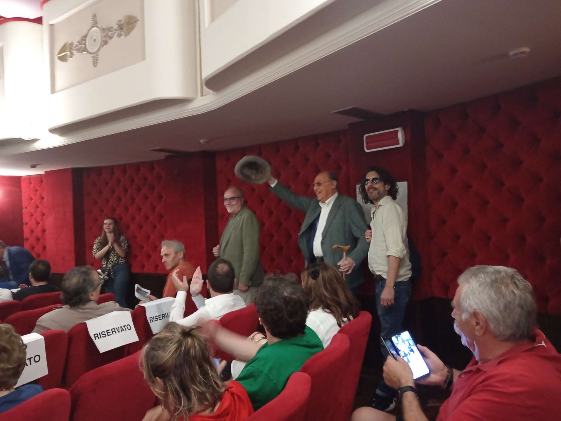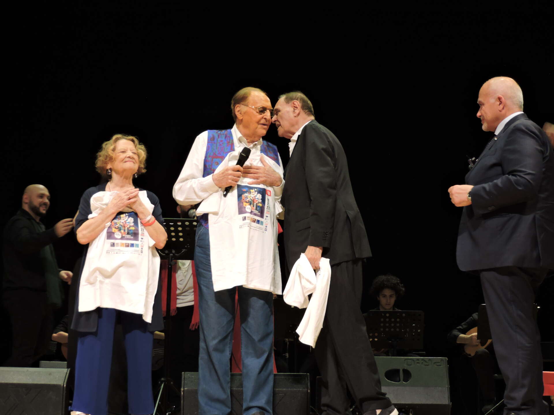 “Mi sono messo il cappello – ha detto scherzando Arbore – per togliermelo e omaggiare il pubblico di Benevento di fronte al sindaco Clemente Mastella che io conosco da tanto tempo. Ricordo quando sono venuto qui nel 2021. Il sindaco si mise in prima fila con la mascherina e tutto il pubblico con le mascherine non poteva cantare. Facemmo un concerto bellissimo ma a bocca chiusa. Fu uno degli ultimi della nostra ‘Orchestra Italiana’. Dico grazie al Conservatorio ‘Nicola Sala’ perché è stato il primo a fare una cattedra di canzoni napoletane. Sono davvero felice di questo riconoscimento e li ringrazio di aver pensato a me. Con l’Orchestra Italiana abbiamo fatto qualcosa come 1600 concerti in trenta anni portando la canzone napoletana nel mondo quando stava per essere dimenticata e ringrazio i 15 musicisti che mi hanno accompagnato in quel progetto meraviglioso”. Arbore poi ha ricordato la sua gioventù spiegando come è nata la sua grande passione per la musica e per quella napoletana in particolare: “Quando ero ragazzo – ha spiegato Arbore – sentivo le canzoni americane perché vicino casa mia c’era il circolo dei militari americani e dietro c’erano i muratori che ricostruivano Foggia e cantavano le canzoni napoletane. Da lì sono nate le mie passioni”.