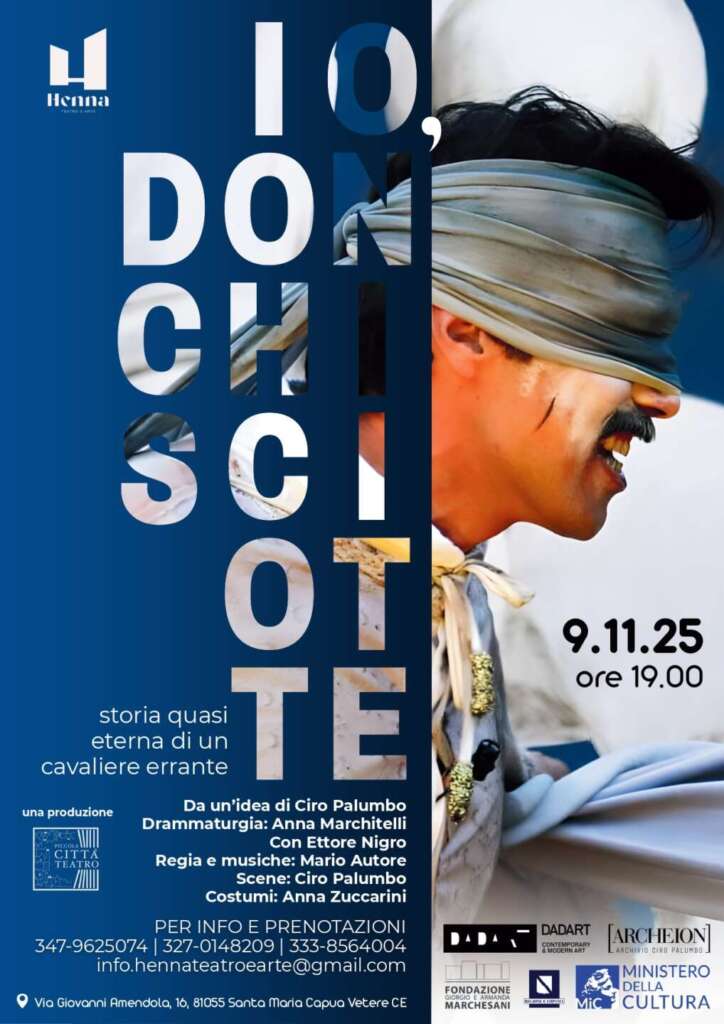 Domenica 9 Novembre alle ore 19 tornano Ettore Nigro e Mario Autore da Henna – Teatro e arte, a Santa Maria Capua Vetere. Lo spettacolo teatrale si intitola “IO, DON CHISCIOTTE – Storia quasi eterna di un cavaliere errante”.