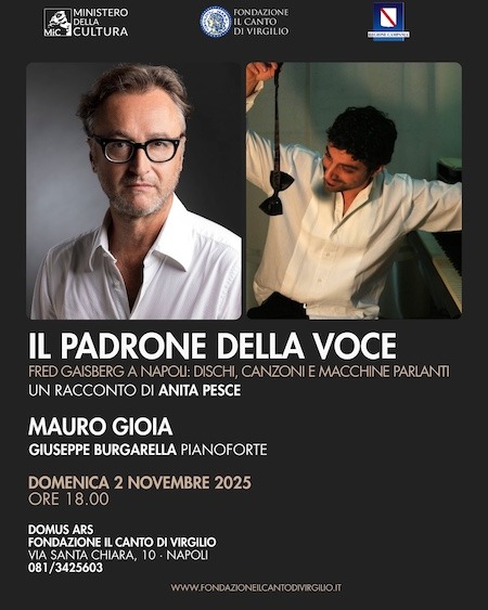 Il giorno successivo, alle ore 18, debutta in prima assoluta lo spettacolo “Il padrone della voce – Fred Gaisberg a Napoli: dischi, canzoni e macchine parlanti”, scritto da Anita Pesce e interpretato da Mauro Gioia con Giuseppe Burgarella al pianoforte.
