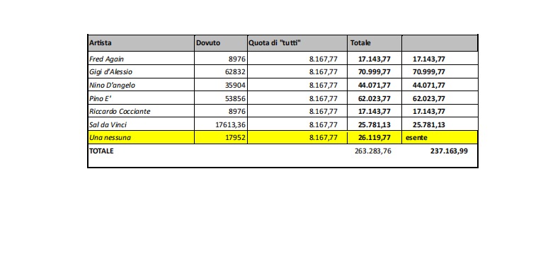 “Il Comune – sottolineano – per concedere l’uso della piazza per il periodo tra il 28 agosto e il primo novembre ha incassato 237.164,00 euro. A pagare sono stati le società che rappresentano i singoli artisti moltiplicando lo spazio occupato per la tariffa base di 13,6 per metro quadro. Il totale è stato poi diviso per tre. Ogni società ha dunque pagato solo un terzo ricevendo uno sconto più che sostanzioso. A spendere di più è stato ovviamente Gigi D’Alessio che per dieci concerti ha versato appena 70.999,77 euro. Poco più di settemila euro a serata. Secondo in classifica Nino D’Angelo che per due sere ha speso 44.071,77. Una differenza dovuta alla suddivisione dei cosiddetti “oneri comuni”. Nello spazio occupato sono stati sistemati circa dodicimila posti con un costo per ogni biglietto tra gli 80 e i 40 euro. Gli incassi sono stati dunque multimilionari”.