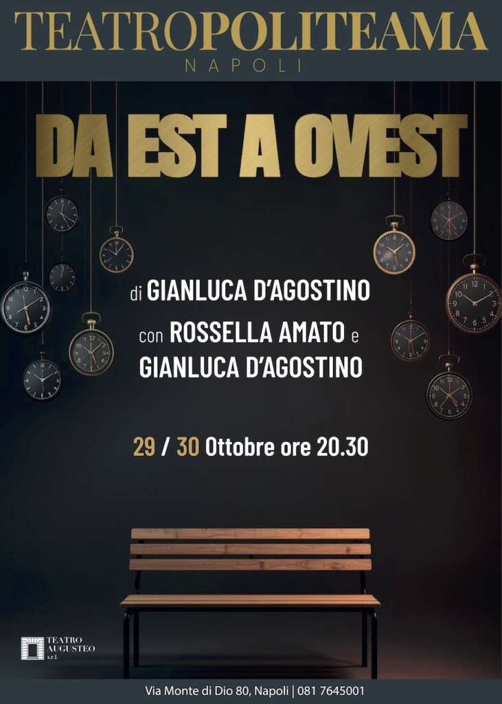 Andrà in scena mercoledì 29 e giovedì 30 ottobre 2025, alle ore 20.30, al Politeama di Napoli (Via Monte di Dio 80) Da Est a Ovest, testo e regia di Gianluca D’Agostino. La produzione porta sul palco un lavoro che indaga la fragilità dei legami affettivi nell’epoca della comunicazione globale.