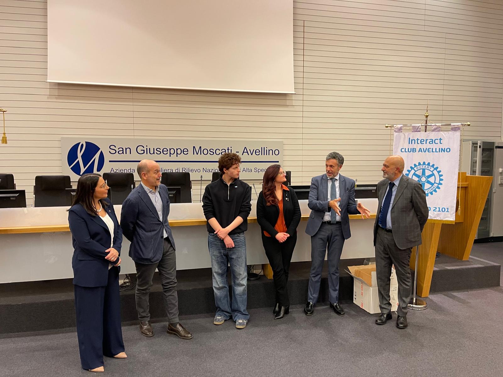 Una discreta e riservata cerimonia di donazione si è svolta questo pomeriggio nell’aula magna della Città ospedaliera e ha visto la partecipazione del presidente del Rotary Club di Avellino, Alberto De Matteis, del delegato Rotary per l’Interact, Malvina Mennillo, del consulente Interact, Viviana Cerullo. Ad accogliere la delegazione e i giovani interactiani c’erano il Direttore generale dell’Azienda Moscati, Germano Perito, e il Direttore dell’Unità operativa di Pediatria, Edoardo Ponticiello.