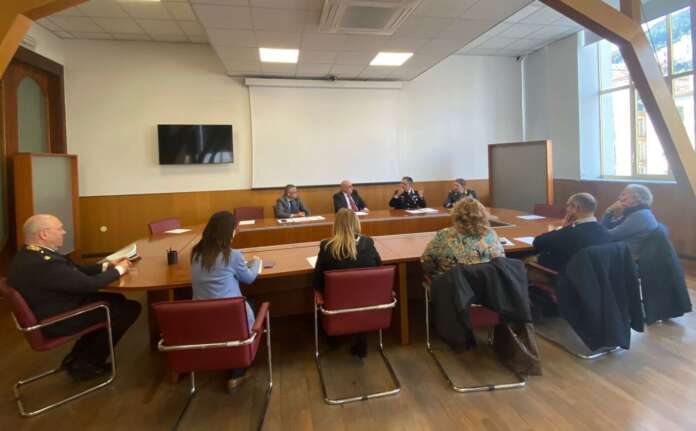 Salerno – È stato un incontro breve ma intenso quello che ha visto uno di fronte agli altri i vertici delle forze dell’ordine, il prefetto di Salerno Francesco Russo e dall’altra parte del tavolo i due sindaci destinatari a distanza un giorno dall’altro di un ordigno sotto le loro abitazioni. Paola Lanzara, sindaco di Castel San Giorgio e Carmine Pagano, primo cittadino di Roccapiemonte insieme hanno chiesto la vicinanza dello Stato al massimo rappresentante del governo in provincia di Salerno, sua eccellenza il prefetto Francesco Russo che con al suo fianco il questore di Salerno Giancarlo Conticchio, il generale della Guardia di Finanza Oriol De Luca e il colonnello Massimo De Masi in rappresentanza dell’Arma, ha fornito le due rassicurazioni confrontandosi con i sindaci. Carmine Pagano ha ancora una volta ribadito di non aver idea di chi possa essere il mittente dell’episodio esplosivo che ha danneggiato l’ingresso della palazzina dove abita, anche perché, come ribadisce nell’intervista non ci sono interessi tali da far pensare di aver attirato la malavita. Ancora non è chiaro se i due episodi siano in qualche modo correlati ma le indagini seguono questa ipotesi.