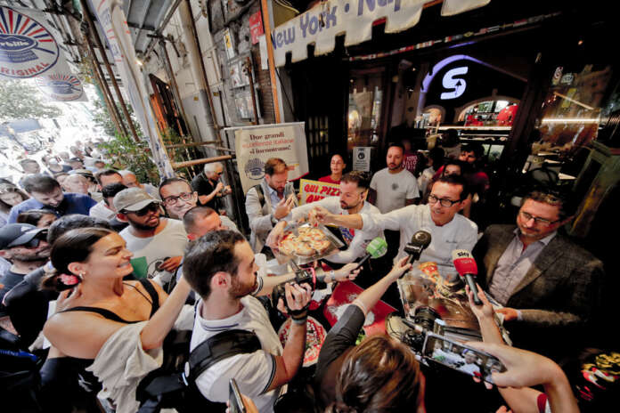 Particolarmente offesi, così, si sono sentiti i pizzaioli napoletani. Tant’è che oggi, presso la storica pizzeria Sorbillo ai Tribunali, il fatto si è fatto serio. E le pizze, all’ora di pranzo, sono state distribuite addirittura gratis, con tanto di comizio del consiglere regionale dei Verdi Francesco Emilio Borrelli.