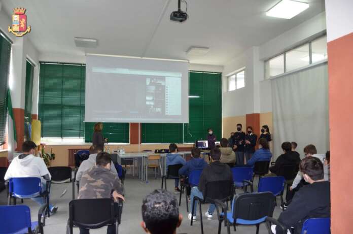 I Referenti della Questura hanno utilizzato strumenti multimediali per al trattazione delle materie di argomento; gli studenti, di cui una parte in presenza ed altri in collegamento “streaming”, hanno mostrato una vivace attenzione alle tematiche trattate, ponendo numerose domande di chiarimento e di approfondimento.