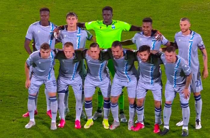 Salernitana-Lazio 0-3 (0-2). Salernitana (3-5-2): Belec; Delli Carri, Motoc, Veseli; Kechrida, Obi (21′ st Ruggeri), Di Tacchio, Schiavone, Ranieri (31′ st Perrone); Gondo (37′ st Vergani), Bonazzoli (96 Guerrieri, 34 Cannavale, 36 Russo, 38 De Lorenzo). All.: Colantuono. Lazio (4-3-3): Strakosha; Patric, Luiz Felipe (38′ st Vavro), Hysaj, Marusic (14′ st Lazzari); Milinkovic-Savic, Cataldi (14′ st Leiva), Luis Alberto; Pedro (41′ pt Felipe Anderson), Immobile, Zaccagni (38′ st Romero). (25 Reina, 31 Adamonis, 44 Floriani, 50 Bertini, 94 Muriqi, 27 Moro). All.: Sarri. Arbitro: Abisso di Palermo Reti: nel pt al 7′ e al 10′ Immobile, nel st al 20′ Lazzari Angoli: 3-7 Recupero: 2′ pt – 2′ st Ammoniti: Cataldi, Schiavone, Ranieri, Lazzari e Luiz Felipe per gioco falloso. Spettatori: 2559.