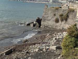 È corsa contro il mare, contro la forza delle onde per strappare pezzi della struttura sportiva situata sul lungomare di Torrione dove, a cedere alla forza delle onde, è stato già un tratto della pista del Pattinodromo. L’area era già stata interdetta ad aprile scorso. Si tratta infatti della cronaca di un crollo annunciato, quello che si è verificato nel giornata di sabato quando prima un piccolo tratto del costone di contenimento e poi via via altri pezzi sono venuti giù. Le immagini realizzate questa mattina con il drone fotografano in tutta la sua grandezza il cedimento che si è verificato mettendo a rischio l’impianto sportivo. Il drone restituisce anche l’impeto delle onde che ad ogni colpo hanno la meglio sulla struttura danneggiata dal tempo e probabilmente anche dalla salsedine. Non a caso, questo è uno dei tratti di lungomare dove l’amministrazione comunale di Salerno è al lavoro per partire a brevissimo con l’intervento di ripascimento che con la creazione di una barriera soffolta in mare consentirà di proteggere la costa.