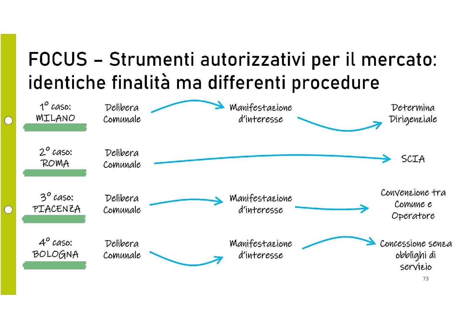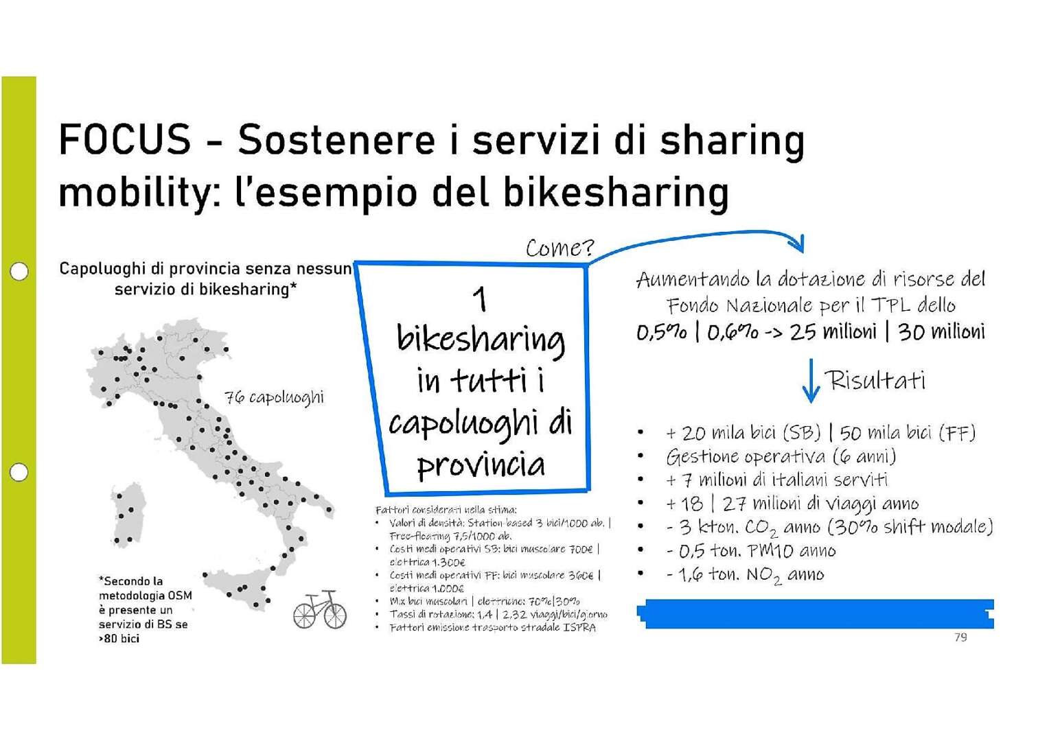 Mancano al momento dei criteri minimi uniformi per la selezione degli operatori, come per esempio il grado di sostenibilità ambientale dei veicoli, l’uso corretto e sicuro dei veicoli da parte degli utenti, la complementarità con gli altri servizi di mobilità, la collaborazione nella creazione di piattaforme di Mobility as a Service etc., in grado di orientare quanto più possibile la selezione del/degli operatori su una base qualitativa. Non sono attualmente presenti, inoltre, standard sulla quantità e la qualità dei dati richiesti per il monitoraggio del servizio, così come le procedure per lo scambio di dati funzionali al controllo dei requisiti richiesti dalle amministrazioni in sedi di procedura di valutazione/selezione degli operatori”.
