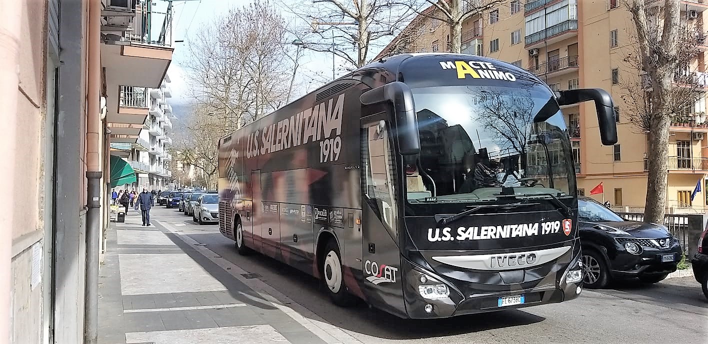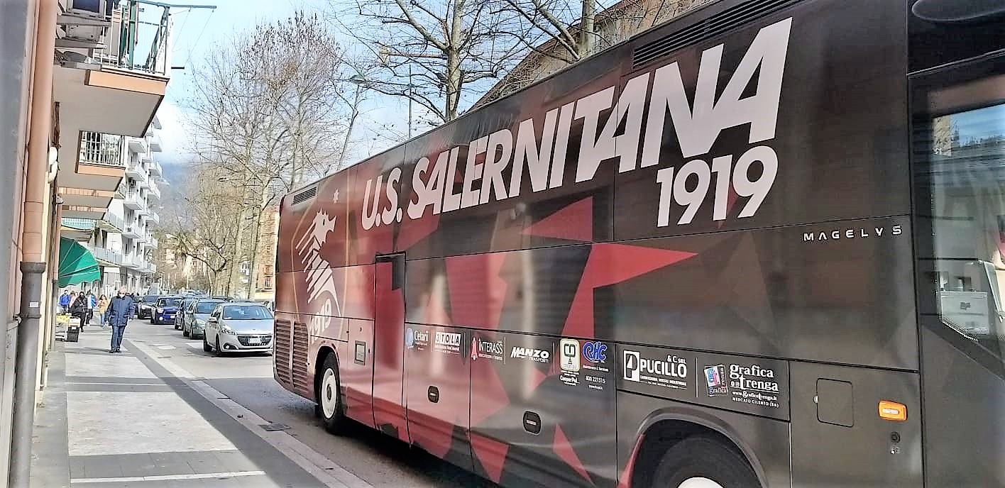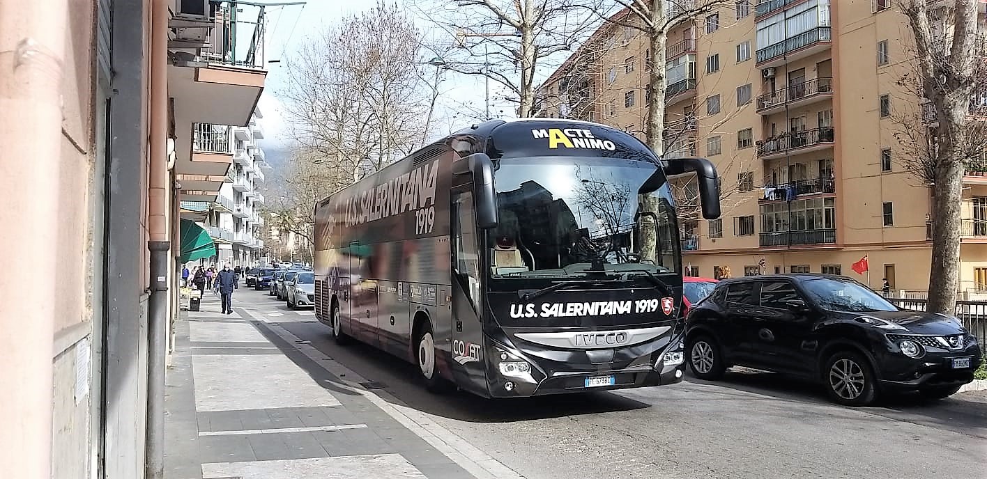 Salerno – Il nuovissimo pullman della Salernitana in giro per la città: è bastato il rapido quanto inusuale tour fatto dal bus sociale (ripreso mentre attraversa via Eugenio Caterina) per accendere l’entusiasmo tra i tifosi in un sabato non ordinario.