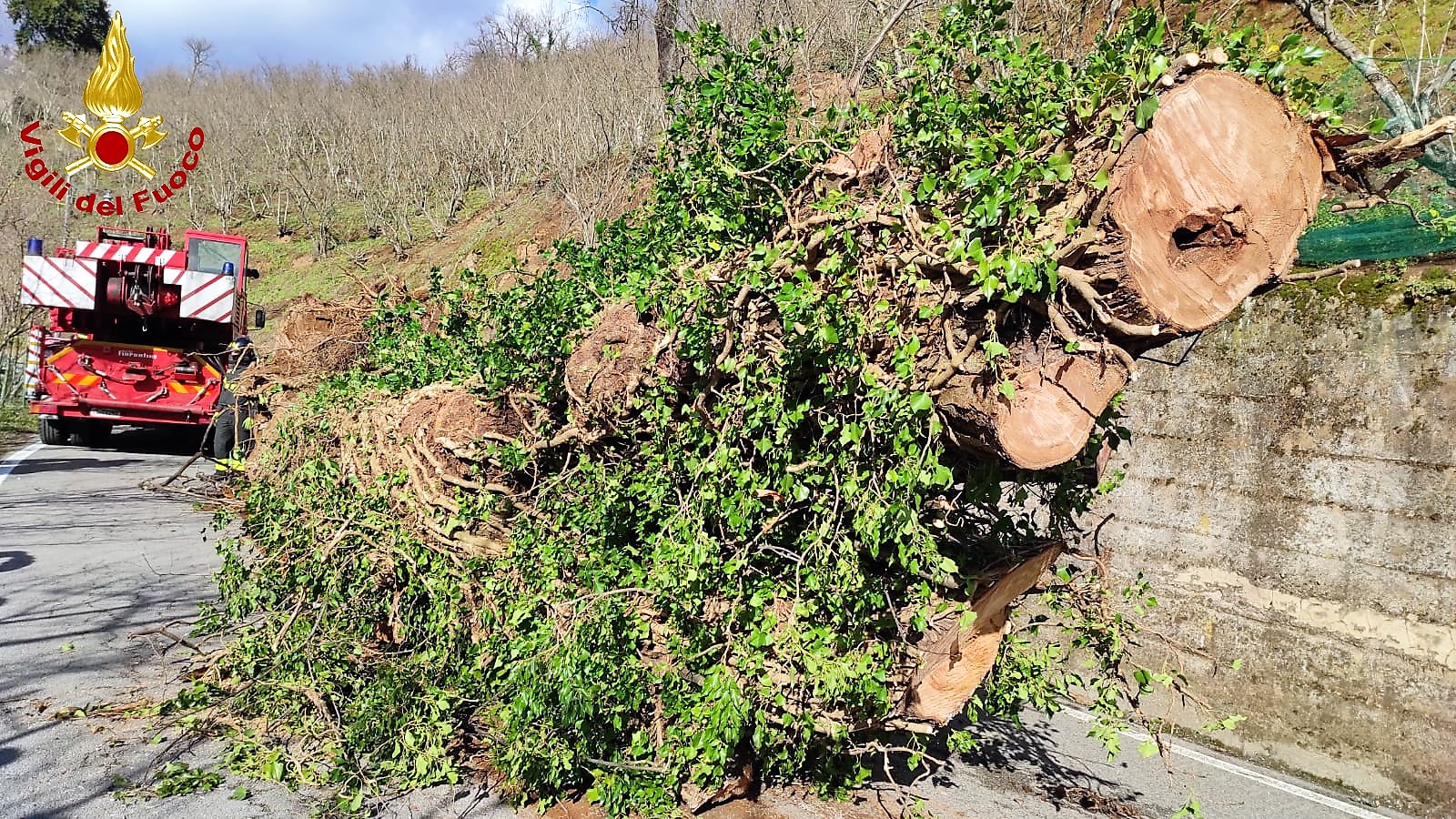 Altri interventi dei Vigili del Fuoco, in particolare, tra Sieti e Capitignano. Qui un altro albero di alto fusto, caduto sulla strada, ha isolato per diverse ore due frazioni.